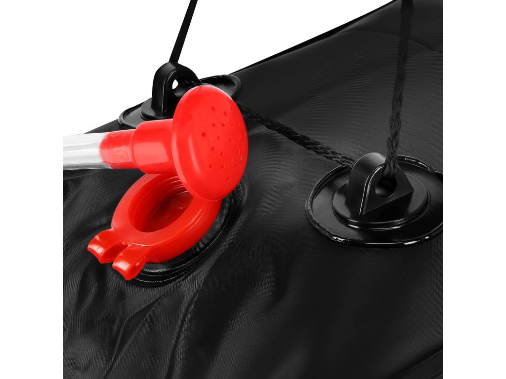 Nádrž je vyrobena z nepropustného, odolného materiálu, který vydrží mnoho sezón. Napouštění se provádí pomocí horního plnícícho otvoru se zátkou. Součástí sady je vypouštěcí ventil a hadice se sprchovací koncovkou. Při roumném dávkování vody je plná 40l nádrž schopna obsloužit 4 osoby.