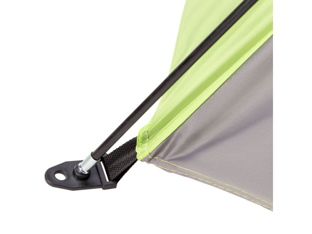 Uvnitř stanu naleznete dvě praktické kapsy, do kterých si můžete uložit například peněženku, telefon, nebo klíče. Pro zajištění stanu proti větru jsou součástí balení čtyři ocelové kolíky.