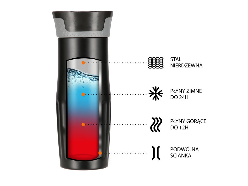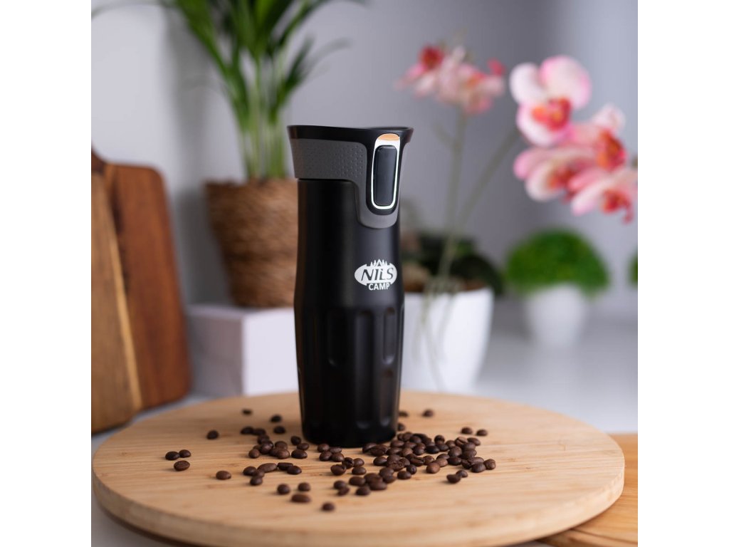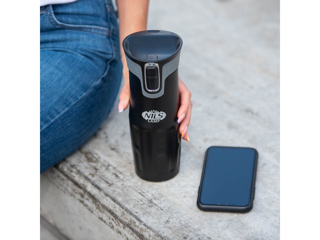 Termohrnek NILS Camp NCC06 se vyznačuje jednoduchou konstrukcí a originálním designem! Termohrnek je vyroben z nerezové oceli s dvojitou stěnou, která zaručuje uchování teplých nápojů po dobu 12 hodin a studených po dobu 24 hodin, nezáleží tedy, zda si do hrnku připravíte ranní kávu, kterou vypijete cestou do práce a nebo zda si do něj přelijete oblíbenou limonádu a vezmete si jej s sebou na několikahodinovou procházku do přírody, termohrnek udrží Váš nápoj ve správné teplotě. Model NCC06 má velmi pohodlný systém otevírání. Pokud se budete chtít napít, jednoduše stačí stisknout tlačítko na přední straně víčka a průtokový otvor se otevře. Jakmile tlačítko pustíte, hrnek se uzavře. Další velkou výhodou je, že spodní část hrnku je opatřena protiskluzovou gumou, která zvyšuje bezpečnost před rozlitím horké kávy nebo čaje, když je hrnek otevřený!