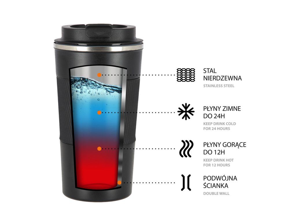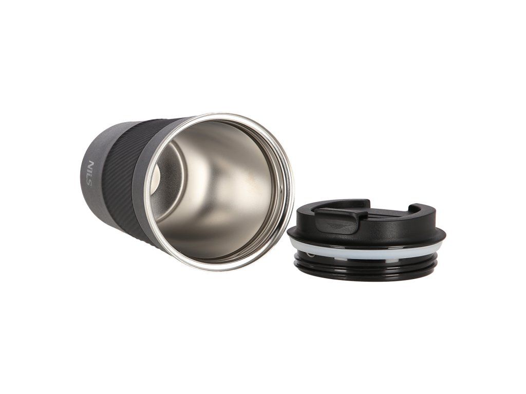 Termohrnek NILS Camp NCC09 se vyznačuje jednoduchou konstrukcí a originálním designem! Termohrnek je vyroben z nerezové oceli s dvojitou stěnou, která zaručuje uchování teplých nápojů po dobu 12 hodin a studených po dobu 24 hodin, nezáleží tedy, zda si do hrnku připravíte ranní kávu, kterou vypijete cestou do práce a nebo zda si do něj přelijete oblíbenou limonádu a vezmete si jej s sebou na několikahodinovou procházku do přírody, termohrnek udrží Váš nápoj ve správné teplotě. Model NCC09 má velmi pohodlný systém otevírání. Stačí zespodu zatlačit na víčko a je hotovo. Silikonový výlisek ve víčku zamezuje rozlití nápoje, pokud je hrnek zavřený. Další velkou výhodou je, že spodní část hrnku je opatřena protiskluzovou gumou, která zvyšuje bezpečnost před rozlitím horké kávy nebo čaje, když je hrnek otevřený!