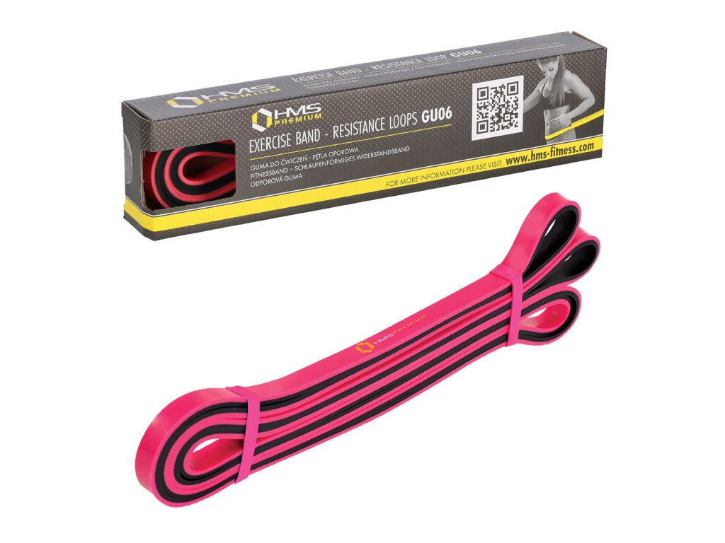 Posilovací, nebo odporová guma HMS Premium GU06 jak je tato pomůcka nazývána, se využívá zejména jako dopomoc při shybech, tricepsových klicích a dalších variacích cviků. Posilovací gumy jsou velmi často též využívány při rehabilitačním cvičení. Díky tomu, že se nejedná o přímou zátěž, ale guma postupným tahem vytváří odpor, je často užívaným rehabilitačním doplňkem při úrazech svalů, šlach a kloubů.