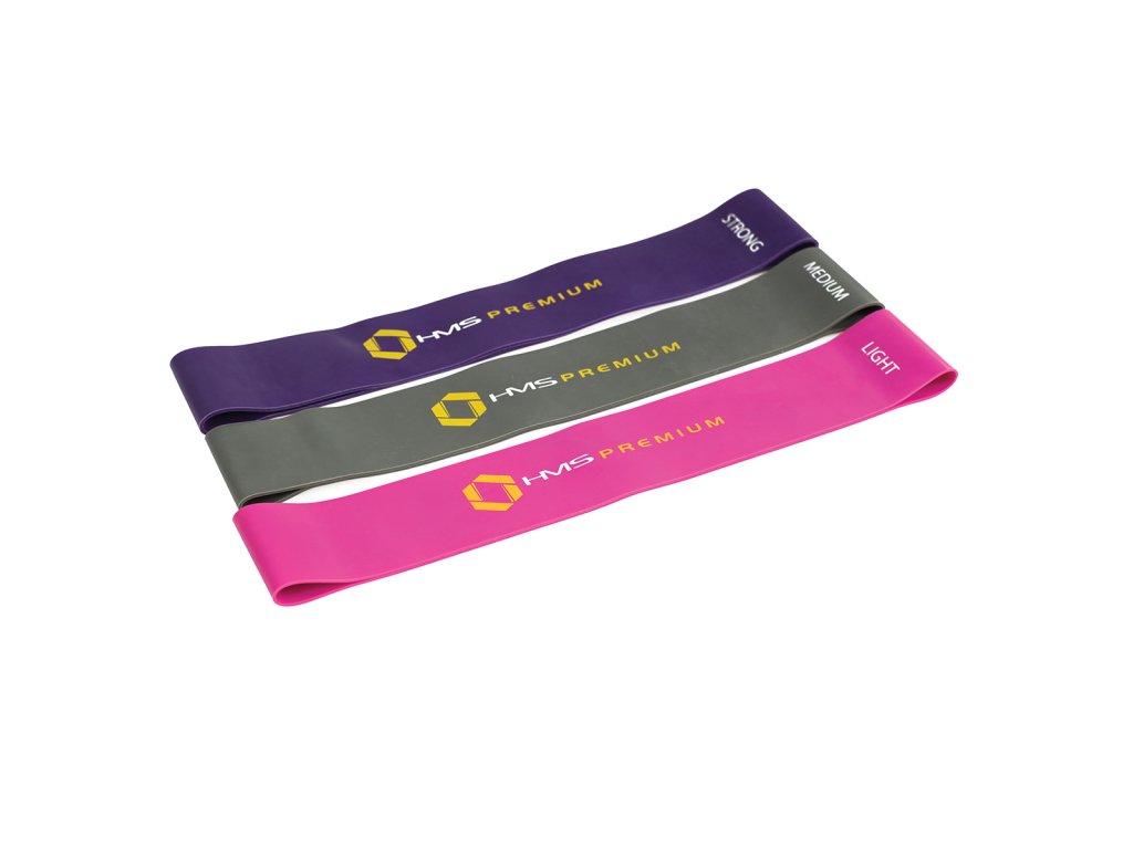 Set 3 krátkých posilovacích gum HMS jež jsou využívany v silovém tréninku, kondičním tréninku, ale i v rehabilitačním cvičení. V silovém tréninku slouží jako dopomoc nebo jako dynamická zátěž. Při rehabilitaci jsou využité protože se nejedná o přímou zátěž, ale guma postupným tahem vytváří odpor a to především při úrazech svalů, šlach a kloubů.