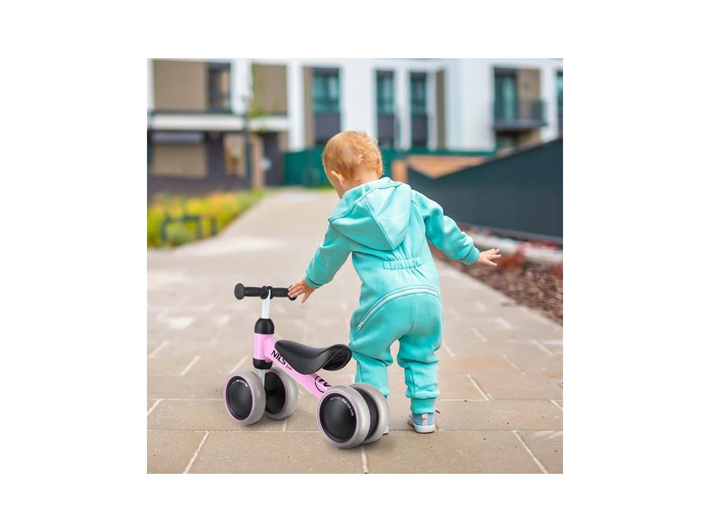 Dětské odrážedlo NILS Fun RB002 je perfektní první kolo pro nejmenší děti, které si právě osvojily umění chůze. Jeho stabilní konstrukce se čtyřmi kolečky z EVA pěny zajišťuje bezpečnou hru a je šetrná k domácím podlahám. Odrážedlo nemá pedály, což umožňuje dětem soustředit se na rozvoj koordinace a rovnováhy tlačením nohama.