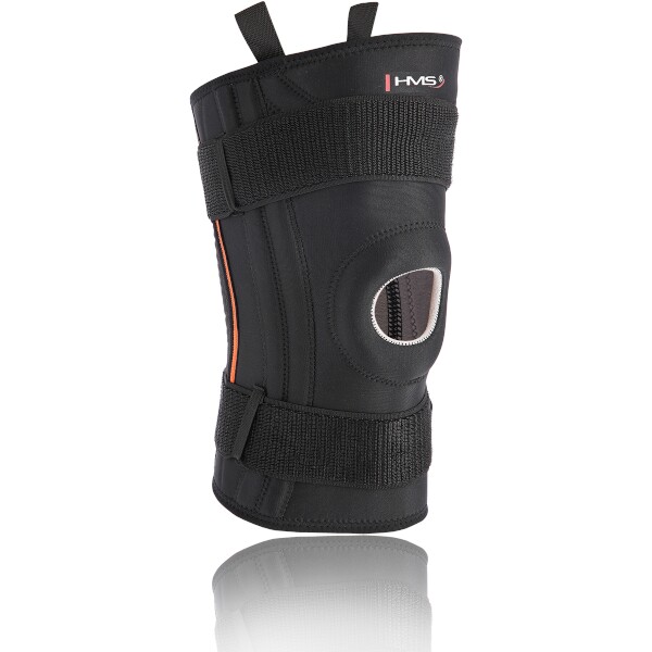 Ortéza HMS KO1655 je vyrobena z kombinace neoprenu, polyesteru a nylonu v úpravě airprene. Výsledný materiál je elastický, roztažitelný do všech směrů a pomocí systému suchých zipů je možné stabilizátor nastavit přesně podle Vašich potřeb. Po stranách jsou do konstrukce všity výztuhy, které zamezují pohybu kolene do stran a vzad. V přední části je kapsa na zip, ve které se nachází silikonový kroužek pro stabilizaci čéšky. Kroužek lze snadno vyjmout a záleží pouze na Vás, jak hodně potřebujete koleno stabilizovat.