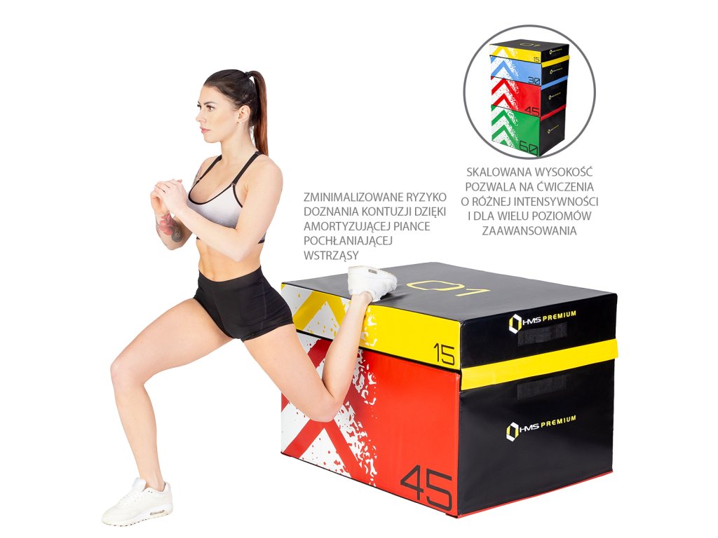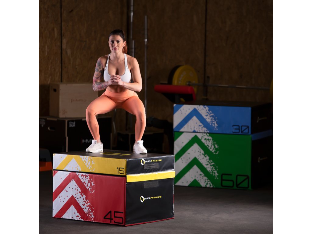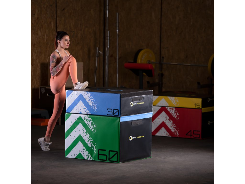HMS Premium PYBS01 je sada čtyř měkkých, plyometrických skříní o různé výšce.