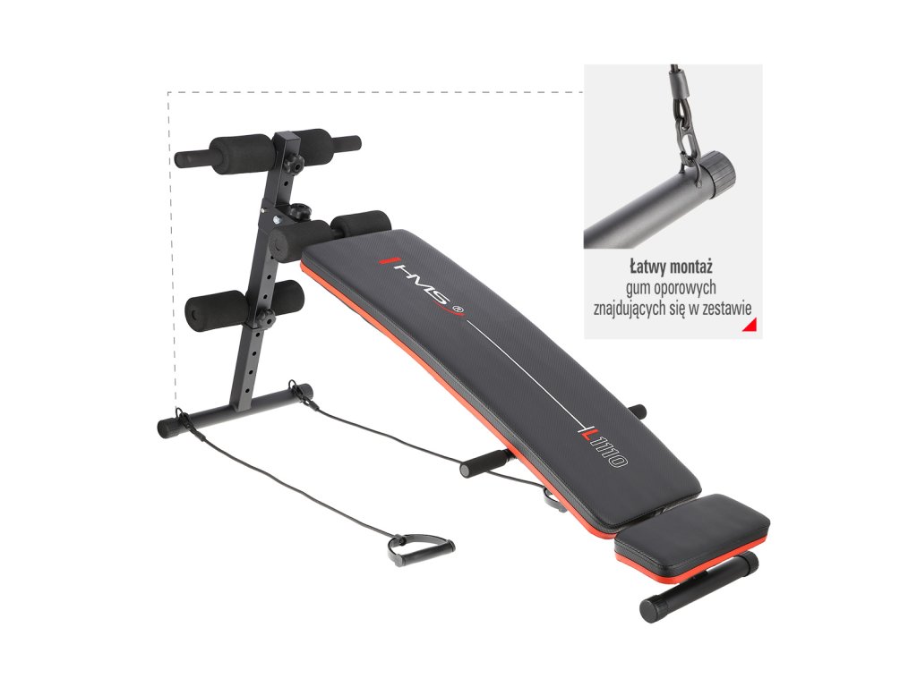 HMS L1110 je šikmá, polohovatelná lavice, která je primárně určená k tréninku sedů lehů.