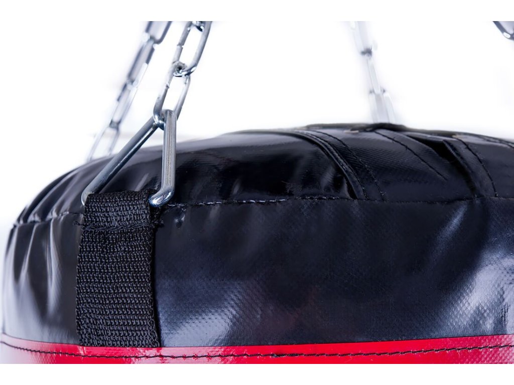 Červený zpevňující pás po celém obvodu boxovacího pytle je určený ke zpevnění úchytů držících 4 řetězy pytle. Tato část pytle je mimořádně namáhaná a proto je nutné její extra zpevnění, aby boxovací pytel vydržel intenzívní kopy a údery.