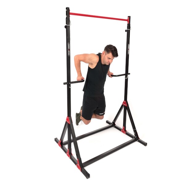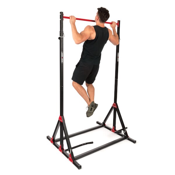 Volně stojící hrazda je skvělou investicí, pokud nechcete, nebo nemůžete nainstalovat hrazdu do stěny, nebo stropu, ale přesto chcete mít záruku vysoké stability, nebo pokud chcete hrazdu přemisťovat. Přídavná nastavitelné držadla, která můžete použít pro kliky nebo dipy, umožňují s pomocí této stacionární hrazdy komplexní trénink mnoha svalových skupin.