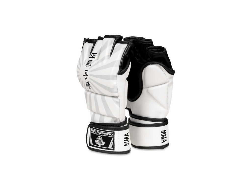 Rukavice pro MMA zápas i trénink DBX BUSHIDO E1v7 jsou vyrobeny ze zpevněné, umělé kůže se zvýšenou elasticitou, vyplněny jsou pěnou. Vnitřní otevřená straně rukavice umožňuje dobrý úchop a ruce lépe větrají. Rukavice je vybavena ochranným krytem hřbetu palce a dlouhým, širokým suchým zipem pro zpevnění zápěstí, aby se minimalizovalo případné riziko zranění. Vnitřní strana rukavice je obšita hladkým materiálem pro snadné nasazení a sundání i během náročného tréninku. Samotný anatomický tvar rukavice ve spojení se zvýšenou elasticitou umělé kůže zajistí jejich komfortní užívání.