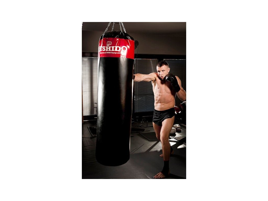 Profesionální boxovací pytel DBX BUSHIDO 150 x 40cm, váha 50 kg. Délka řetězu při zavěšení 45 cm (díky karabině lze nastavit i kratší délku).