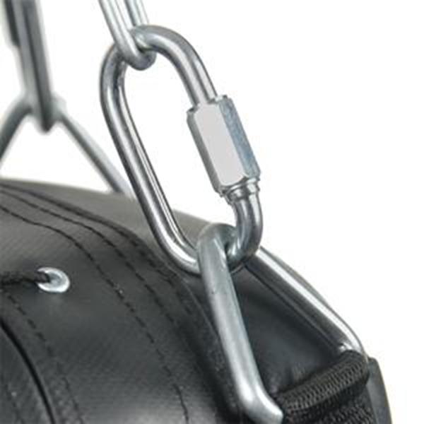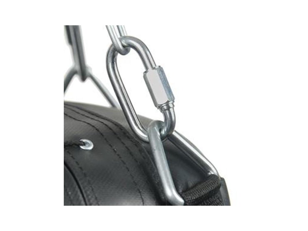 Profesionální boxovací pytel na trénink MMA DBX BUSHIDO 130 x 42 cm. Délka řetezů při zavěšení 40 cm (díky karabině lze nastavit i kratší délku). V četně sestavy je návlek na horní část pytle.