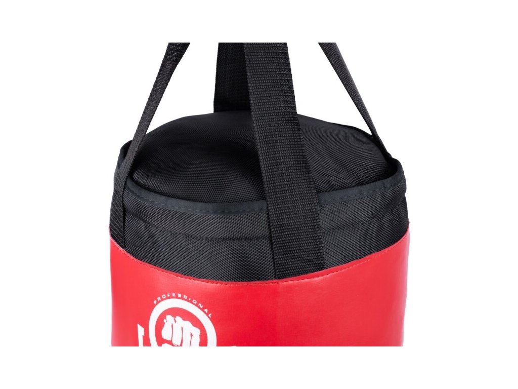 Plně naplněný boxovací pytel připravený na trénink vyrobený ze silného polyesterového materiálu odolného proti roztržení. Použitý materiál se snadno udržuje v čistotě a odolává povětrnostním vlivům. Materiál je hladký a příjemný na dotek, takže trénink na něm je bezpečný a pohodlný. Pytel je vybaven 4 pevnými nosnými popruhy s ocelovými oky zajišťujícími odolnost a bezpečnost při tréninku.