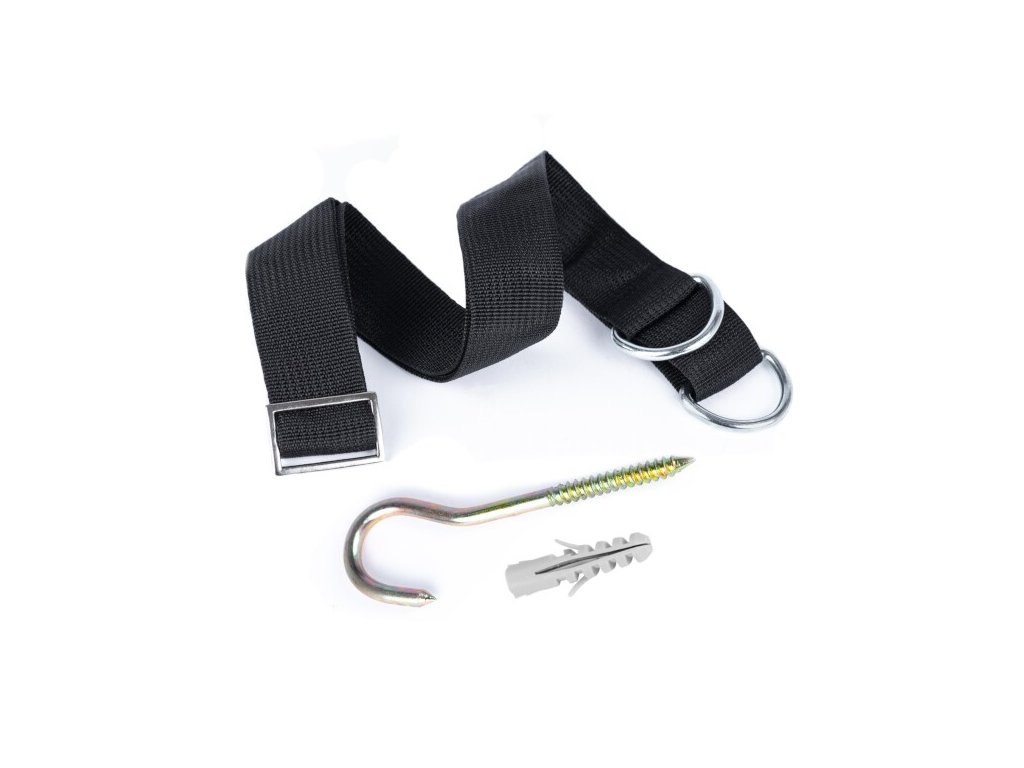 Sada KIDS60.2 obsahuje popruh s přezkou. Umožňuje zavěsit pytel v optimální výšce vzhledem k výšce dítěte. Správné zavěšení pytle je důležité pro pohodlí, ale především pro techniku úderů a prevenci zranění. Popruh je nastavitelný na délku až 100 cm. V sadě také naleznete stropní hák pro zavěšení pytle.