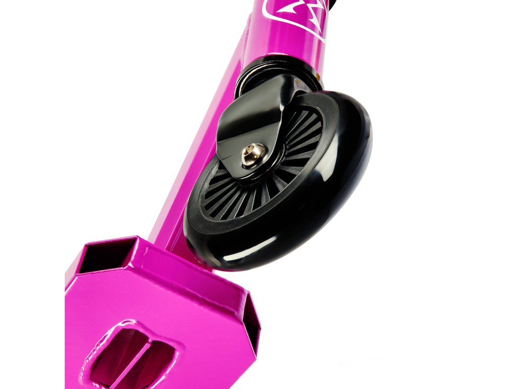 Freestylová koloběžka nemá žádný skládací mechanismus ani systém nastavení výšky řídítek - tyto typy řešení by mohly oslabit celou konstrukci, což samozřejmě není žádoucí u produktu, kde je odolnost zásadní.