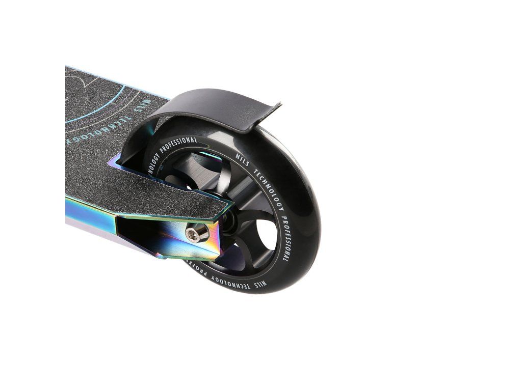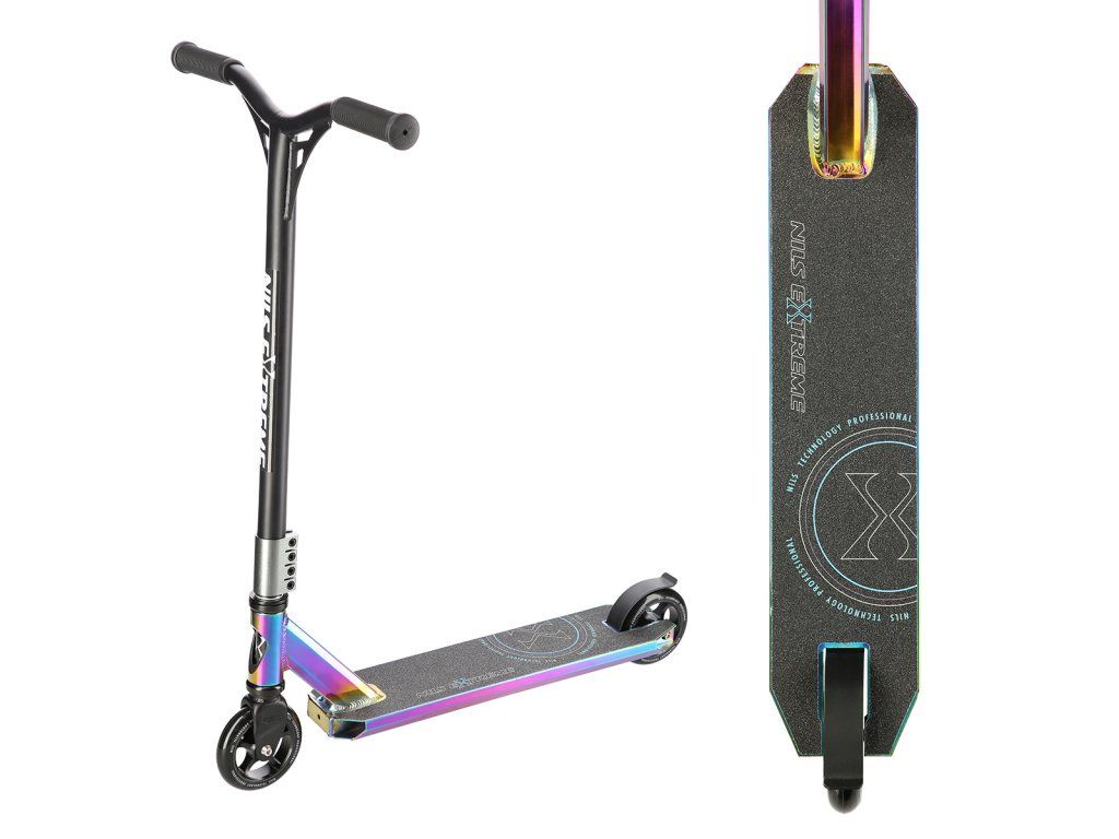 NILS Extreme HS109 je freestyle koloběžka s nosností 100 kg a je tak vhodná jak pro děti, tak pro dospělé. Konstrukce je vyrobena ze silné a trvanlivé oceli. Model HS109 je vhodný na asfalt a dlažbu. Kolečka o rozměru 100 x 24 mm jsou osazena ložisky ABEC 9, bezpečnost zaručuje zadní přítlačná (blatník) brzda. NILS Extreme HS109 je díky malým, rychlým kolečkům, robustní, pevné kostrukci a řídítkům protáčejícím se o 360° určena k provádění triků.