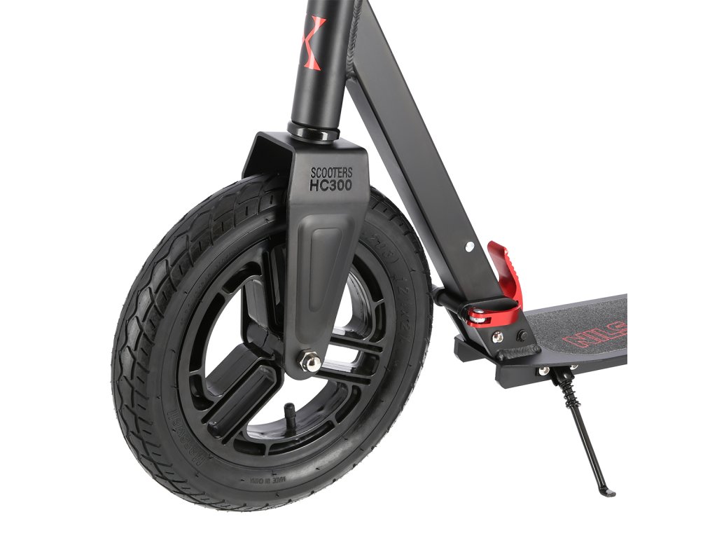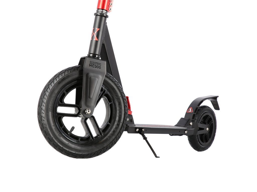 Koloběžka NILS Extreme HC300 je kombinací klasické a skládací koloběžky, která si poradí s klasickými nástrahami města, jako jsou například prohlubně a patníky. Pumpovaná kola jsou ideální pro dlážděné chodníky, pneumatika se přizpůsobí podkladu a i jízda po takzvaných "kočičích hlavách" bude příjemná a tichá. 20-ti centimetrové zadní kolo je osazeno vodorovným tlumičem, které tak má téměř stejný účinek tlumení, jako 30-ti centimetrové přední kolo. Jako brzda slouží robustní, hliníkový blatník, který stačí pouze přišlápnout a koloběžka začne okamžitě zpomalovat. Koloběžka HC300 je vybavena skládacím mechanizmem, kdy po sklopení řídítek můžete s koloběžkou pohodlně cestovat městskou, hromadnou dopravou a nebo si můžete koloběžku uložit do kufru Vašeho vozu. Řídítka jsou zakončena pohodlnými, gumovými gripy pro pevný a pohodlný úchop. Samotná řídítka lze mírně předsadit pro větší jistotu během jízdy. Skládací stojánek je pak už jen pomyslnou "třešničkou na dortu".