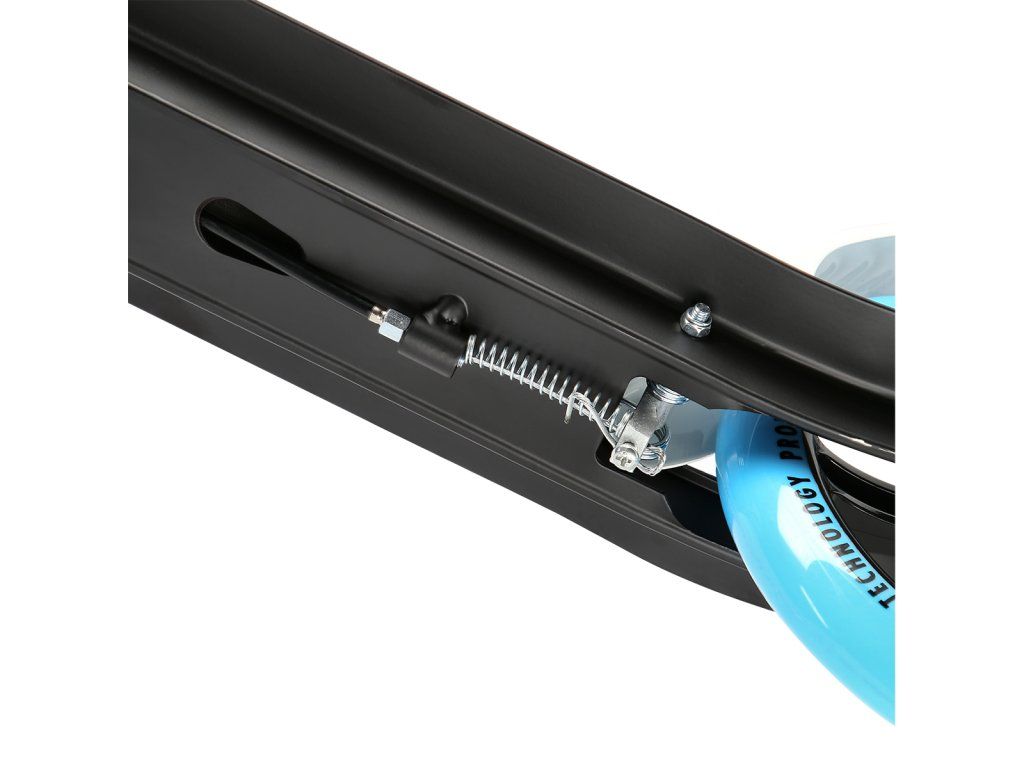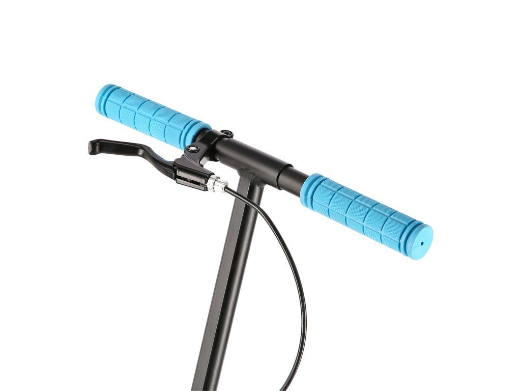 Zadní blatník slouží jako přítlačná brzda, která ještě podtrhuje brzdný účinek mechanické brzdy ovládané lankem z páčky na řídítkách, ty jsou opatřeny gumovými rukojeťmi, které zajišťují pevný a pohodlný úchop. Řídítka jsou výškově nastavitelná do 3 úrovní. Velká kola jsou osazena ložisky ABEC 7 a polyuretanovou pneumatikou o průměru 200 milimetrů. Tato kombinace zajišťuje rychlou, plynulou a bezpečnou jízdu.