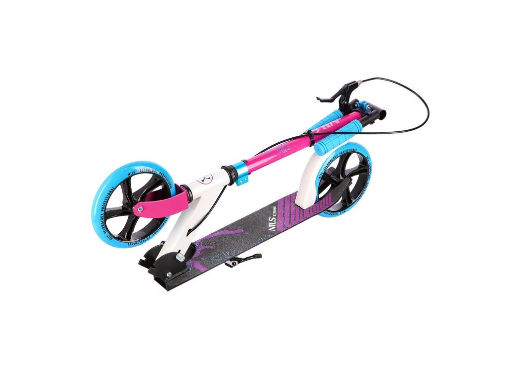 Koloběžka NILS Extreme HM0107 je vhodná pro děti a dorost. Charakteristikou modelu HM0107 je sklopný stojánek a zadní brzda ovládána páčkou z řídítek.