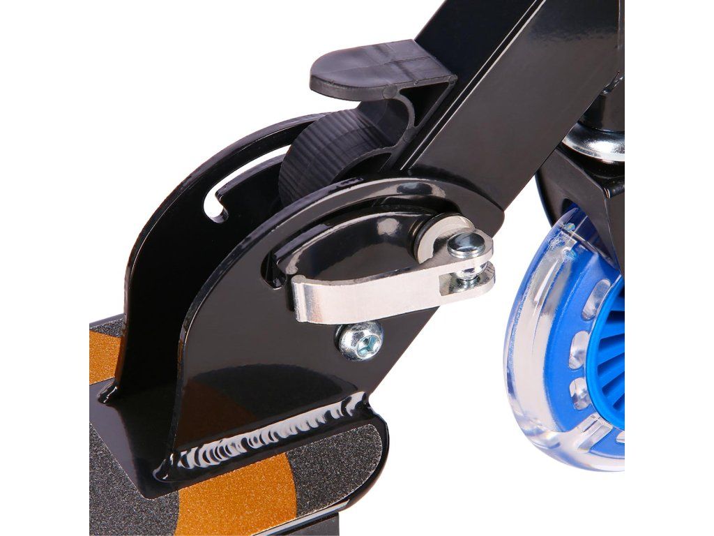Kolečka o průměru 125 milimetrů jsou osazena barevnými LED diodami, ty slouží jako zajímavý, vizuální prvek, zvyšují zájem dětí a v neposlední řadě zvyšují viditelnost koloběžky například za šera. Kolečka svítí automaticky během jejich otáčení. Dále jsou kolečka osazeny ložisky ABEC 5 pro pohodovou jízdu. Zadní blatník slouží jako nášlapná brzda pro bezpečné zastavení koloběžky.