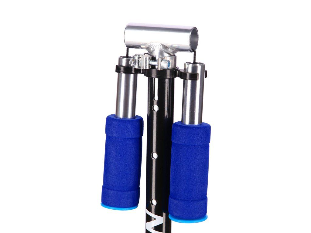 Teleskopická řídítka jsou výškově nastavitelná do 4 poloh (60 - 68 - 73 - 78 cm od země). Změna nastavení výšky se provádí uvolněním páčky rychloupínáku, stisknutím pojistného čepu a vysunutím, nebo zasunutím vnitřní tyče řídítek. Pro úsporu místa lze řídítka složit - k tomu je potřeba uvolnit páčku spodního rychloupínáku a potáhnout táhlo směrem nahoru, řídítka lze následně sklopit. Gripy na řídítkách jsou vyrobeny z TPR pro pevný a pohodlný úchop, šířka řídítek je 32 centimetrů a madla lze sklopit.