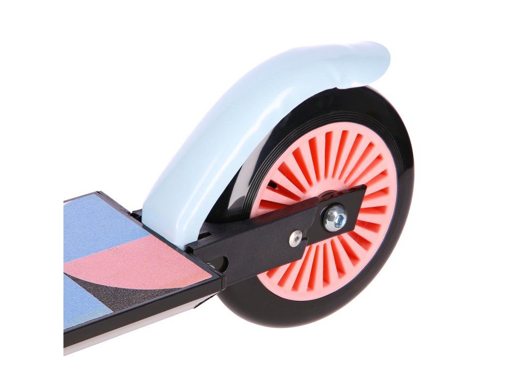Koloběžka má na zadním kole nášlapnou brzdu pro bezpečnou jízdu a rychlé zastavení koloběžky.