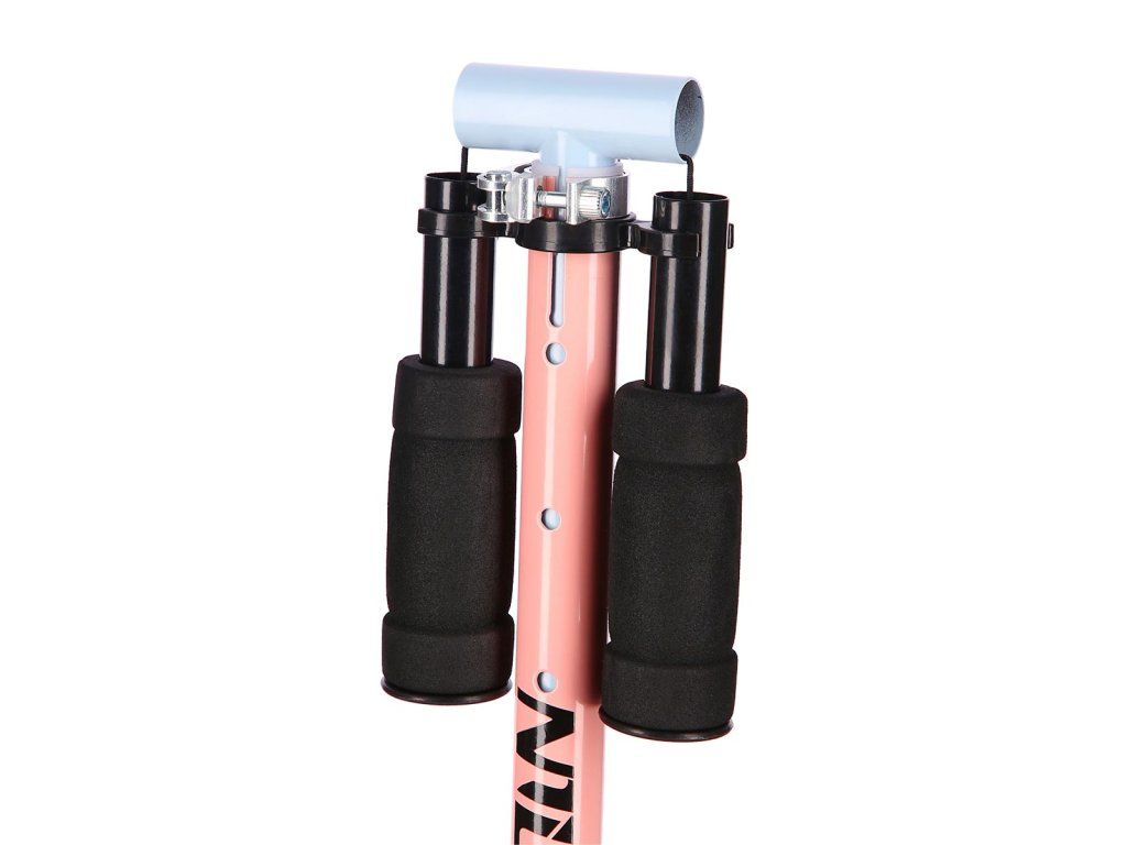 Řídítka jsou výškově nastavitelná do čtyř poloh (60 - 70 - 75 - 80 cm). Samotné gripy (madla) jsou pěnové pro jistý úchop. Řídítka lze pro úsporu místa zasunout a sklopit, správnou polohu řídítek zajišťuje jistící čep. Kola o průměru 125 milimetrů a ložiska třídy ABEC 5 zajišťují pohodovou jízdu. Kola jsou bezdušová, polyuretanová.