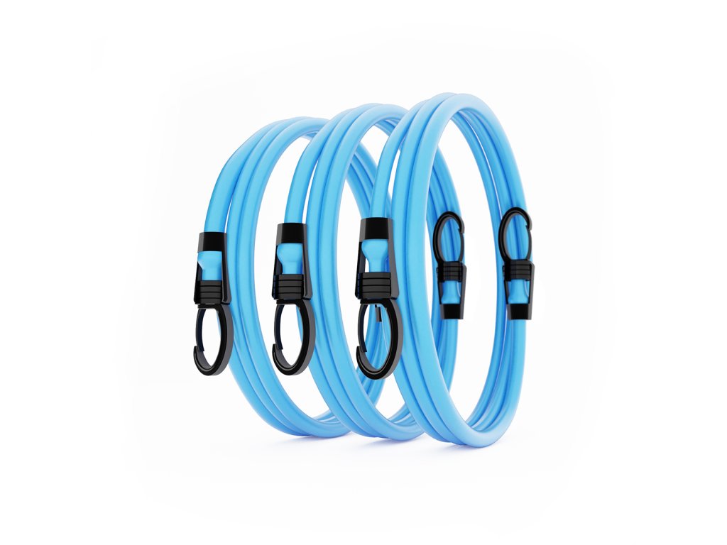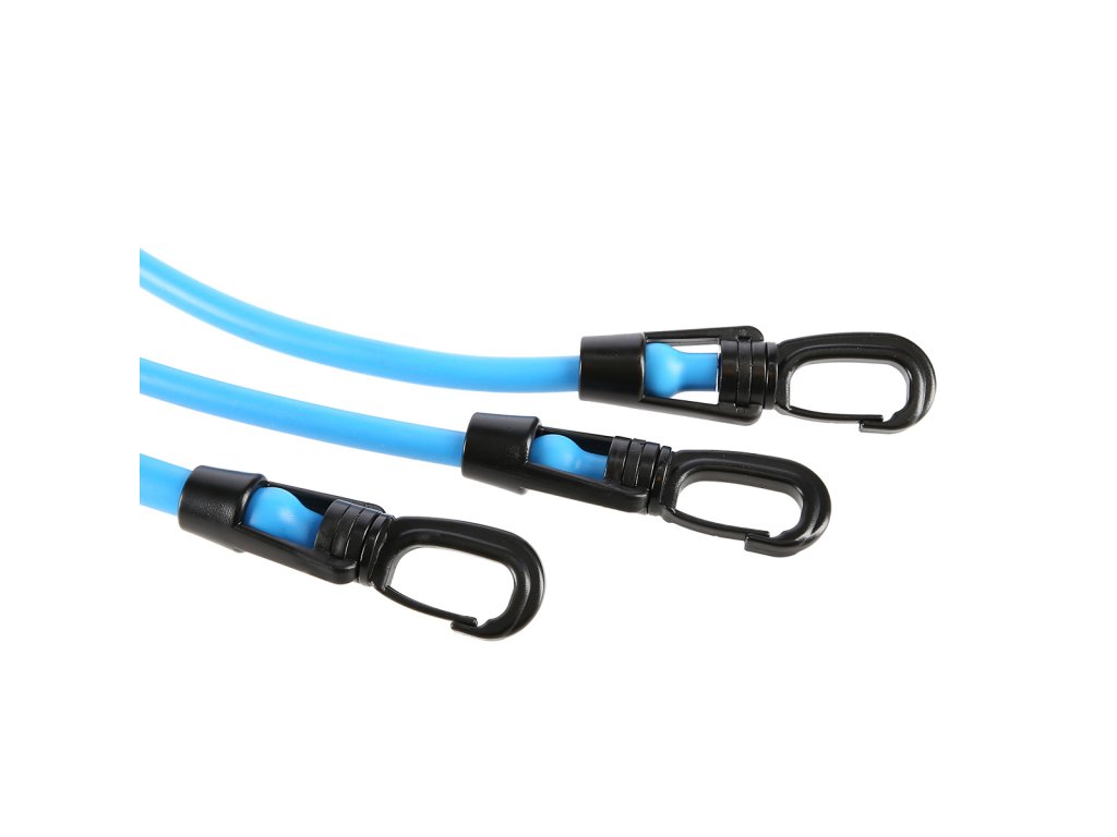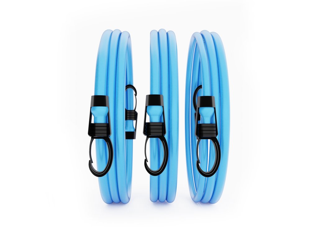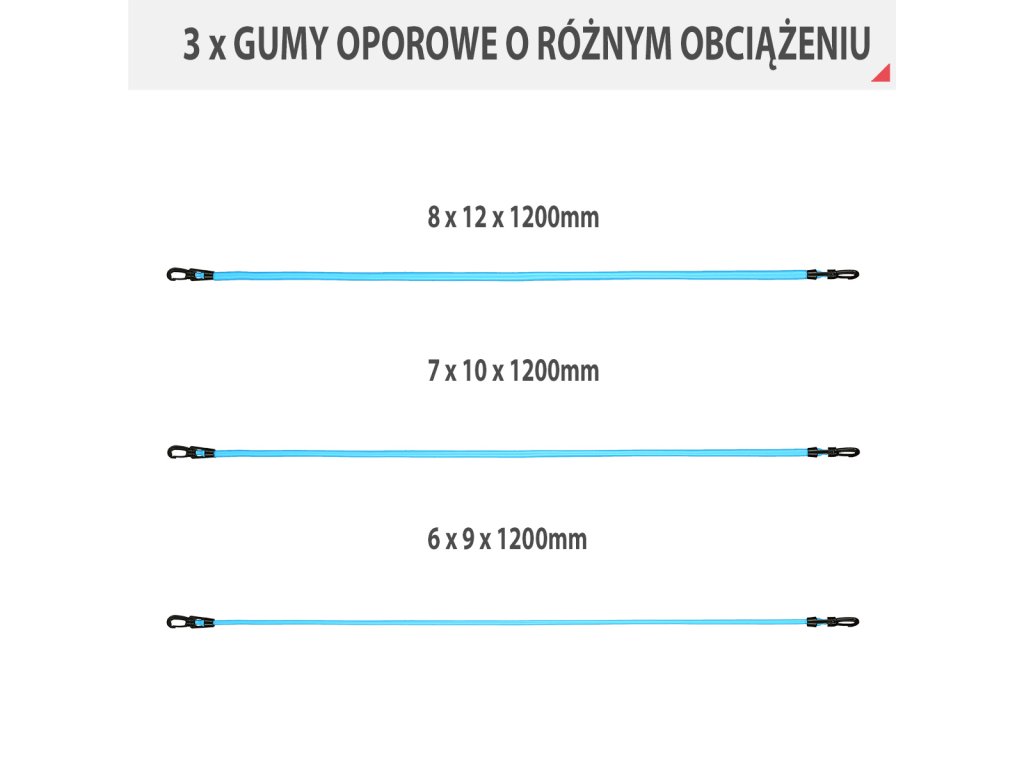 - Univerzálnost – přidávejte další gumy pro zvýšení odporu pomocí funkčních karabin, měňte úhel tréninku přesunutím úchytu úchytu za dveře a střídejte cvičené končetiny výměnou rukojetí.