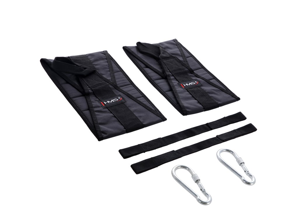 Arm Hanger HMS F4439 jsou závěsné rukávy, kteréí usnadňují trénink břišních svalů. Dodané dva rukávy pomocí karabiny zavěsíte na libovolnou tyč, poté jen provlečete paže rukávy a zahájíte trénink. Použité, kvalitní materiály jsou zárukou dlouhé životnosti. Nosnost 2 rukávů je až 100 kilogramů.