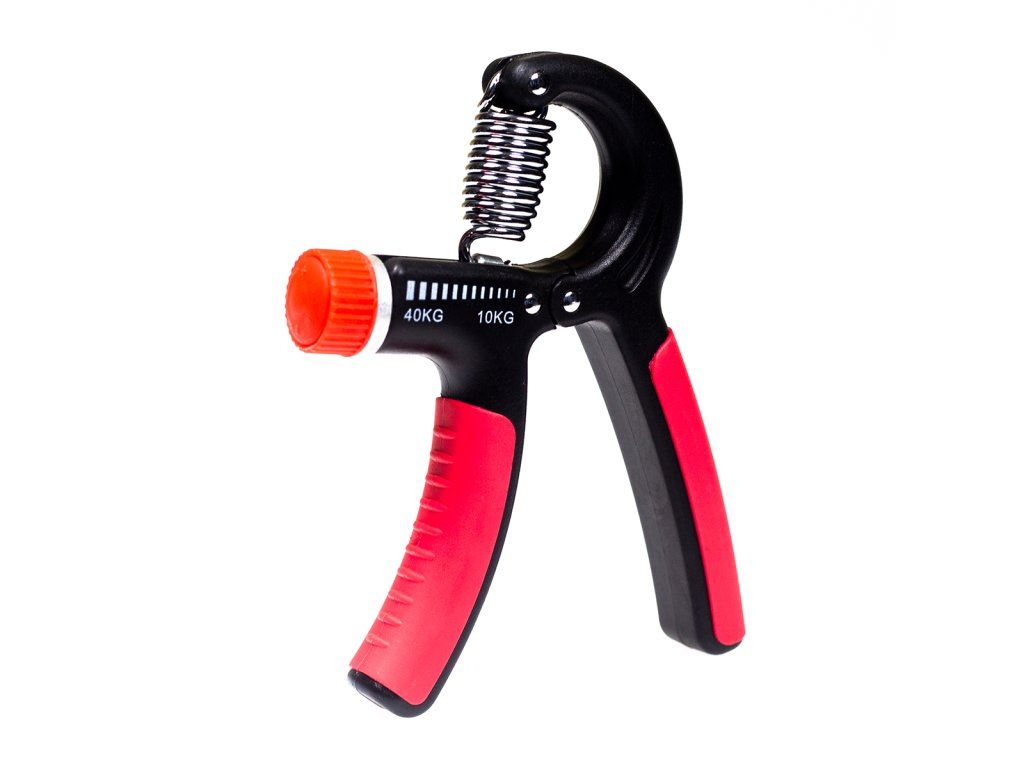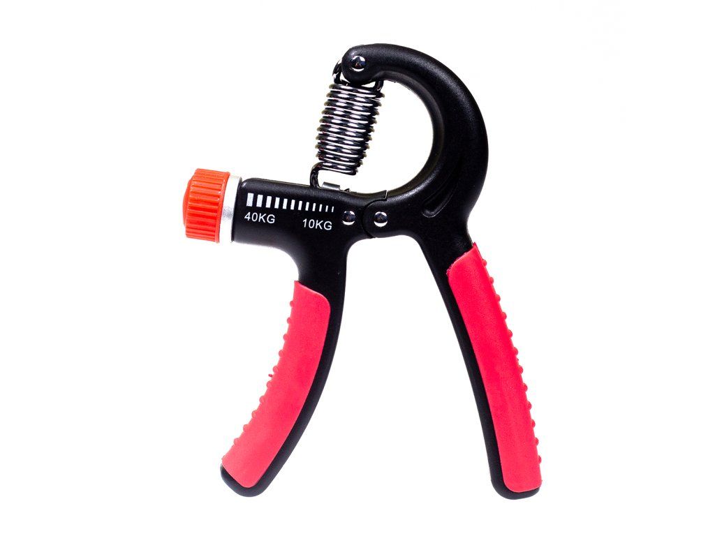 Posilovač zápěstí s tvarovanou rukojetí a nastavitelným odporem stisku. Účelem je posílení zápěstí a svalů předloktí.