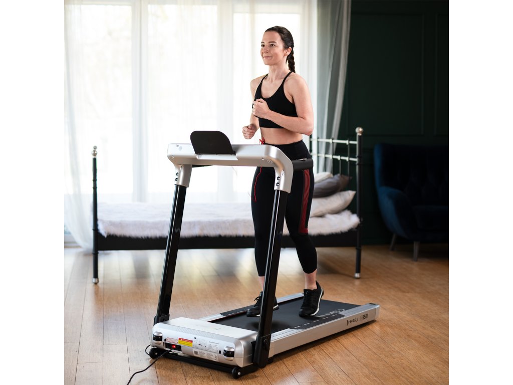 BE8501i není jen běžecký trenažér, je to centrum vašeho domácího tréninku. Díky vestavěnému reproduktoru, připojení k aplikacím Kinomap a ZWIFT a nabíjecímu portu USB promění tento běžecký pás váš trénink v interaktivní dobrodružství. Navíc je vybaven intuitivním podsvíceným displejem, který přehledně zobrazuje všechny důležité údaje o tréninku, jako je rychlost, vzdálenost, spálené kalorie, délka cvičení a počet kroků.
