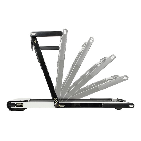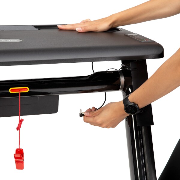 Náš model LOOP12 se od konkurence odlišuje možností nasazení pracovního pultu, na který si můžete odložit například notebook, knížku, nebo oblíbenou kávu. Po nasazení stolu se rychlost běžecké plochy omezí na maximální rychlost 6 km/h a po propojení pultu s konzolí je možné upravovat rychlost přímo z ovládání na pravé straně stolu.