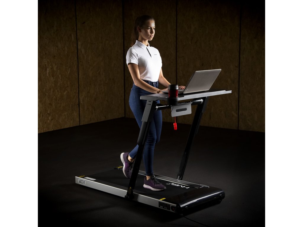 Díky stolu bude nyní možné kombinovat práci a fyzickou aktivitu. Připojení stolu omezuje rychlost běžeckého pásu na 6 km/h, takže obsluha notebooku při chůzi nebude problém. Na stole je umístěn držák na láhev nebo kelímek a nechybí ani držák na tablet. Díky speciálnímu ovládacímu panelu můžeme běžecký pás kdykoli zpomalit nebo vypnout. Stůl se snadno sestavuje a připojení k běžeckému pásu se provádí pomocí jediného kabelu. Takové řešení je skvělou alternativou k práci za stolem.