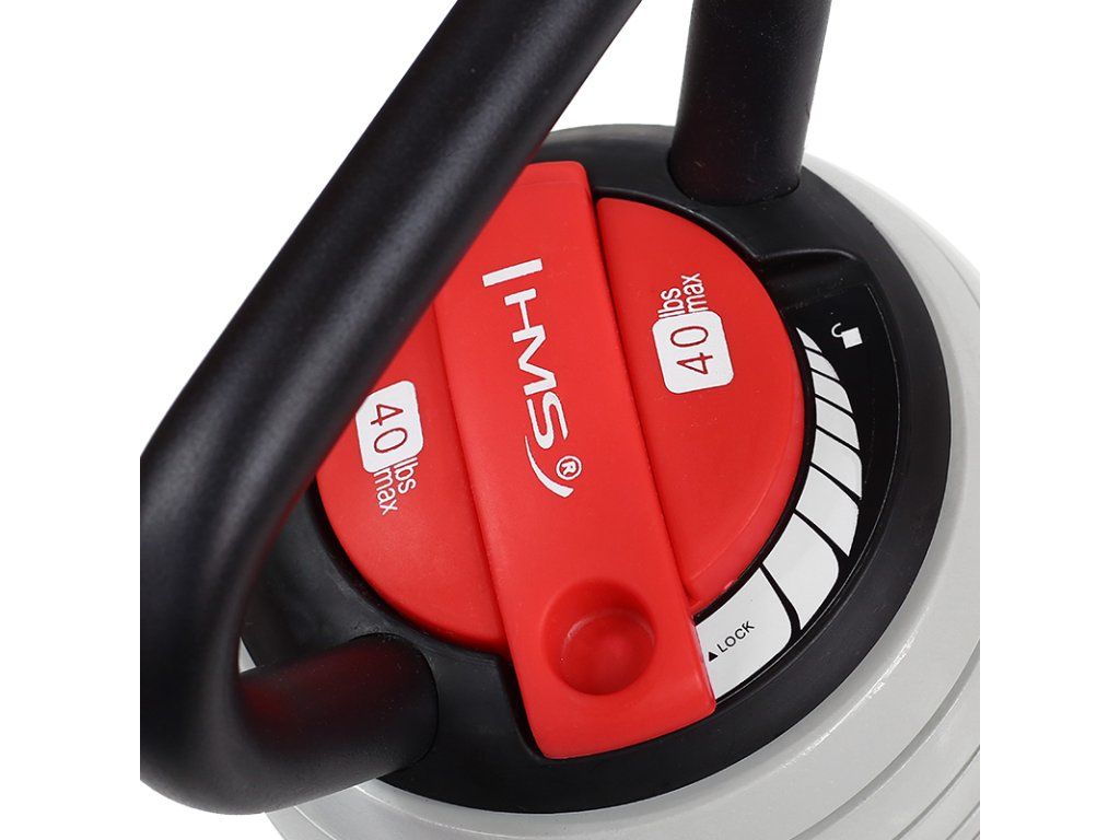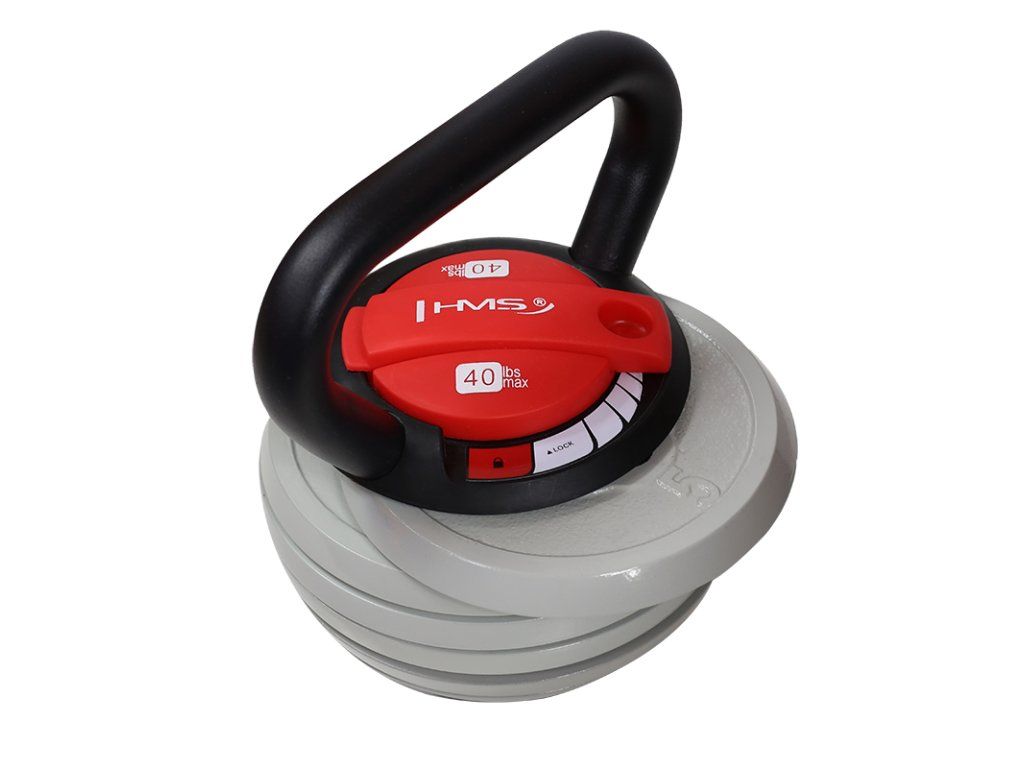 HMS KR40 je nastavitelný kettlebell. Snadné a jednoduché nastavení zátěže je hlavní výhodou tohoto kettlebellu. U činky tak lze díky regulaci na vrchni straně jednoduše nastavit hodnotu pro cvičení. Rozmezí od 3 do 17 kg plně vystačí k domácímu cvičení. Velkým kladem je taky široká protiskluzová rukojeť s průměrem 3 cm. Upozornění: veškerá váha závaží je uváděna v librách (lbs). 1 libra = 0,45 kg