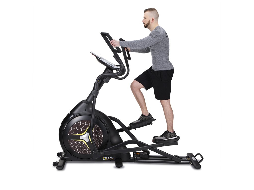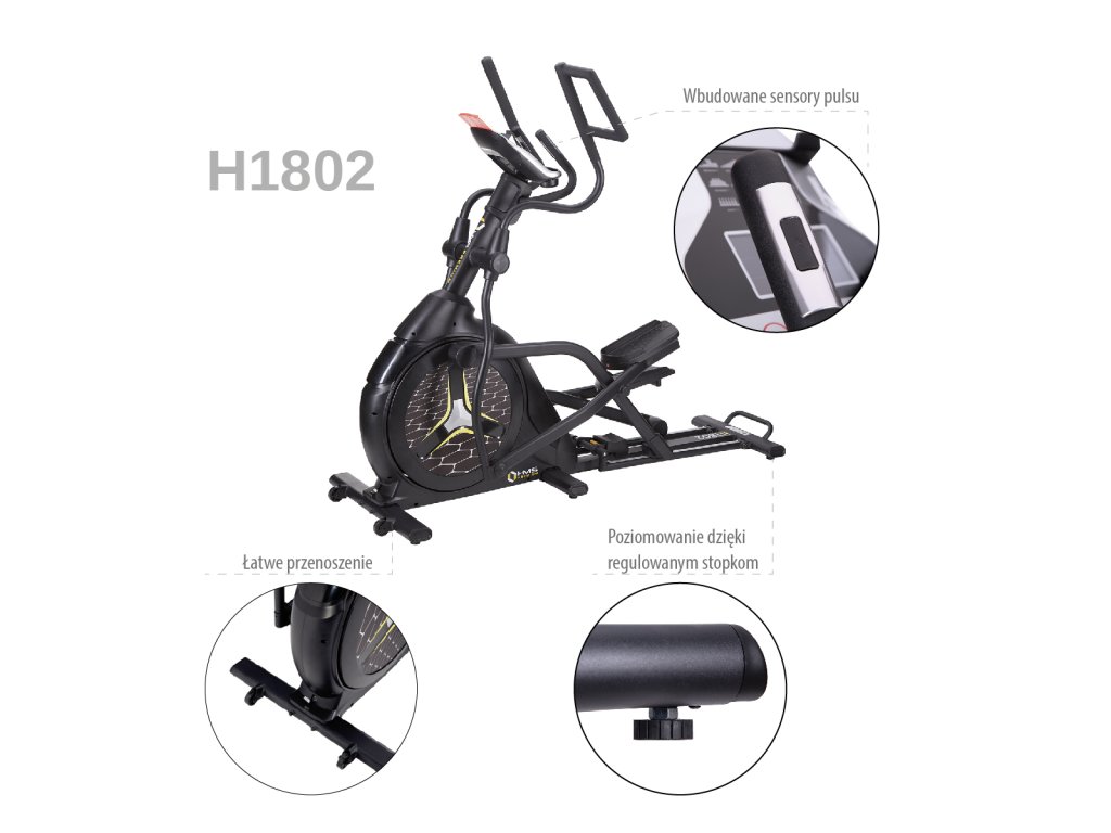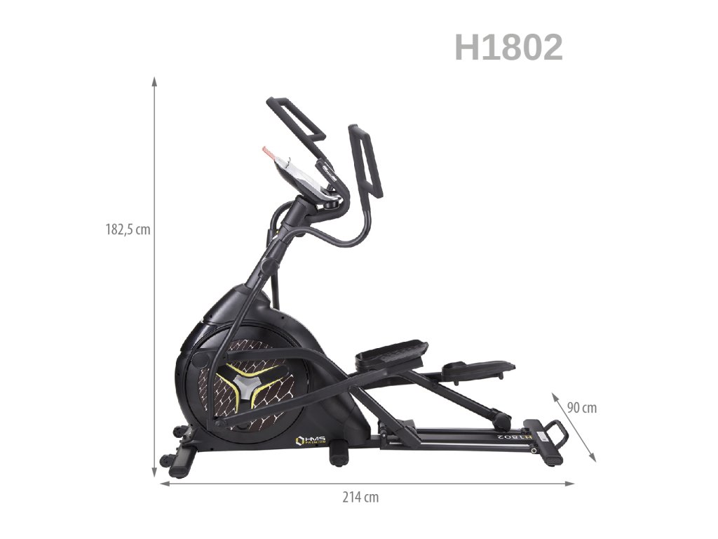 Eliptický trenažér HMS Premium H1802 je určen pro intenzicní trénink ať už v doma, nebo například v klubové posilovně, nebo v hotelovém fitnessu. Největší předností modelu je stabilní konstrukce a 9-ti kilogramové zátěžové kolo v kombinaci s tichou, magnetickou brzdou.