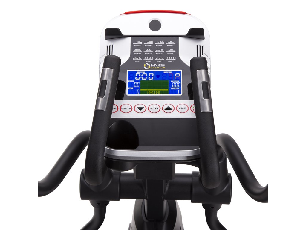 Eliptický trenažér H1802 je vybaven celkem 16-ti programy: 12 vestavěných, 1 manuální, Recovery, HRC a WATT.