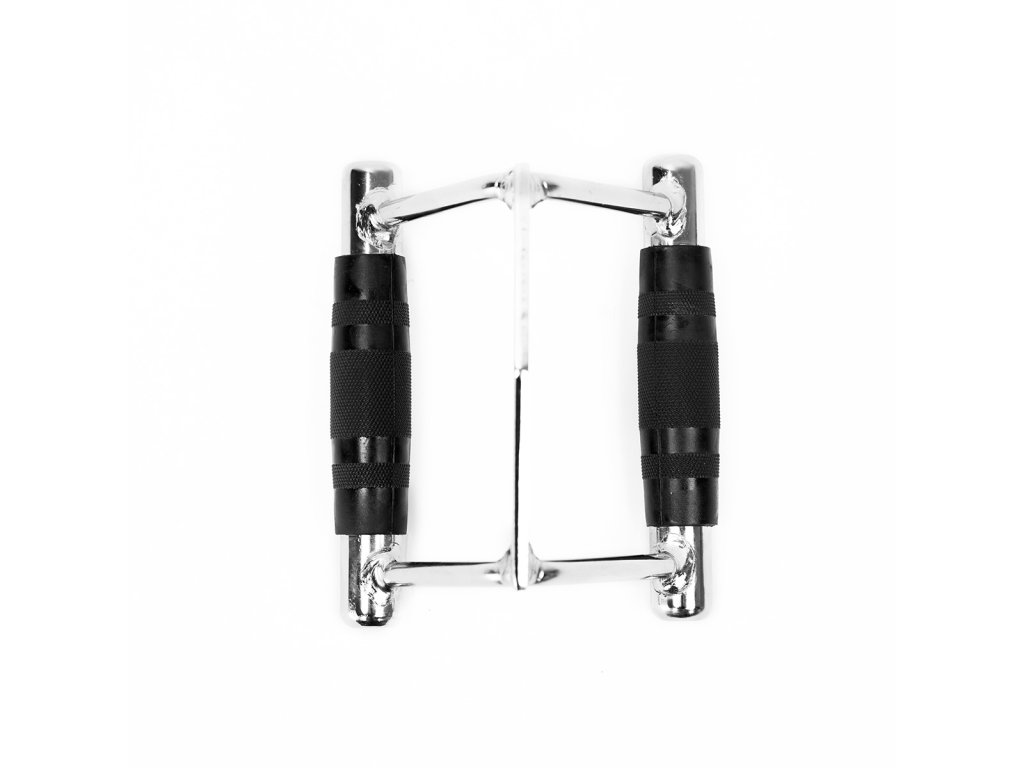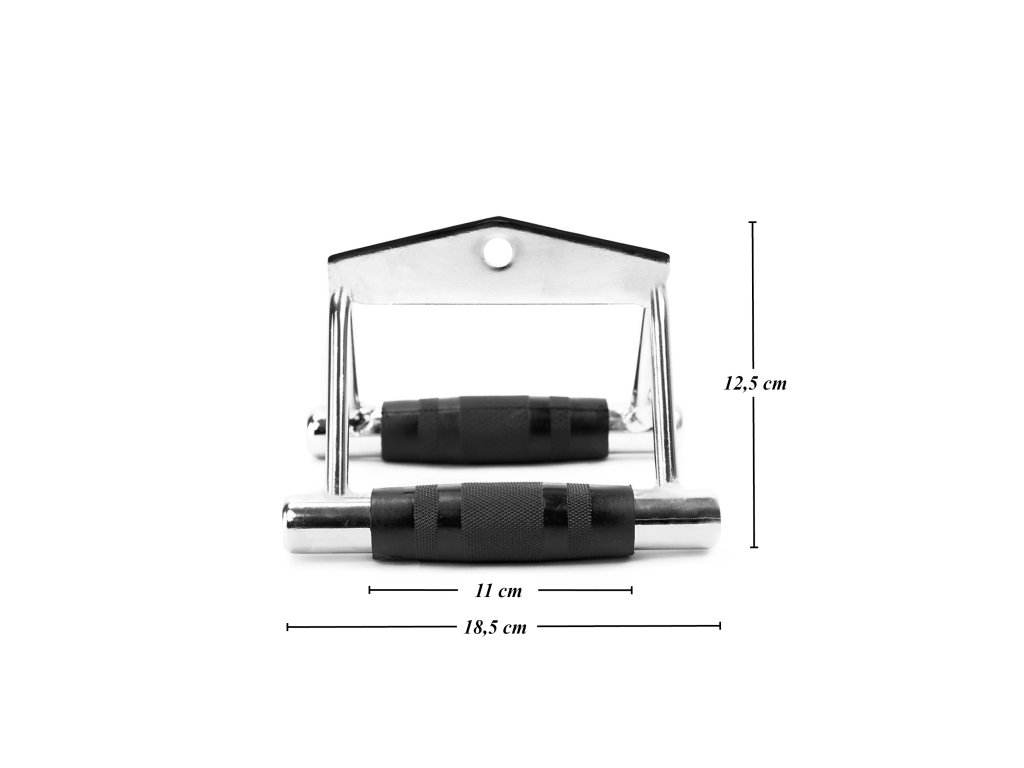 Trojúhelníková konstrukce úchopu zaručuje dokonalou polohu ruky a zároveň nutí ke správnému pohybu při cvičení. Pogumovaná rukojeť zajišťuje bezpečné držení a zabraňuje vyklouznutí adaptéru z ruky a zároveň vyžaduje pevnější úchop. Tímto způsobem také pracujeme na rozvoji svalů předloktí. Nepříliš široká rozteč rukojeti, usnadňuje udržení správné dráhy pohybu, tj. vedení loktů v blízkosti trupu. Adaptér UW04 je vyroben z kvalitní chromované oceli, která umožňuje trénink se značnou zátěží.
