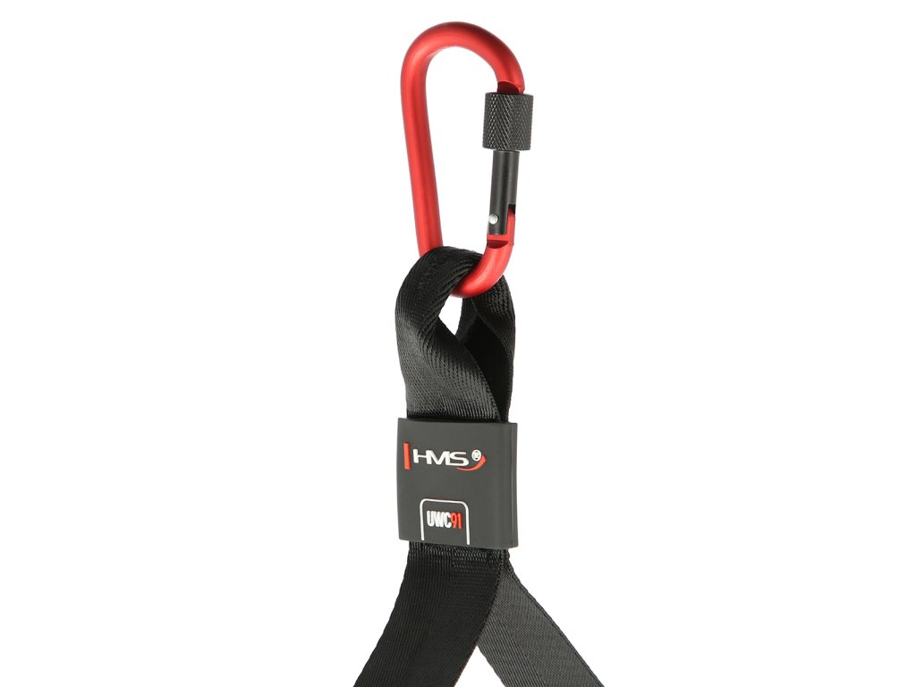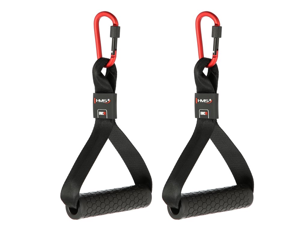 Adaptér HMS UWC91 je úchyt k horní a spodní kladce, nebo jde zapnout k posilovací gumě. Madlo z vysoké vrstvy gumy zaručuje vysoký komfort tréninku a pevný úchop. Hliníková, šroubovací karabina složí k rychlému a bezpečnému zaháknutí kladky.