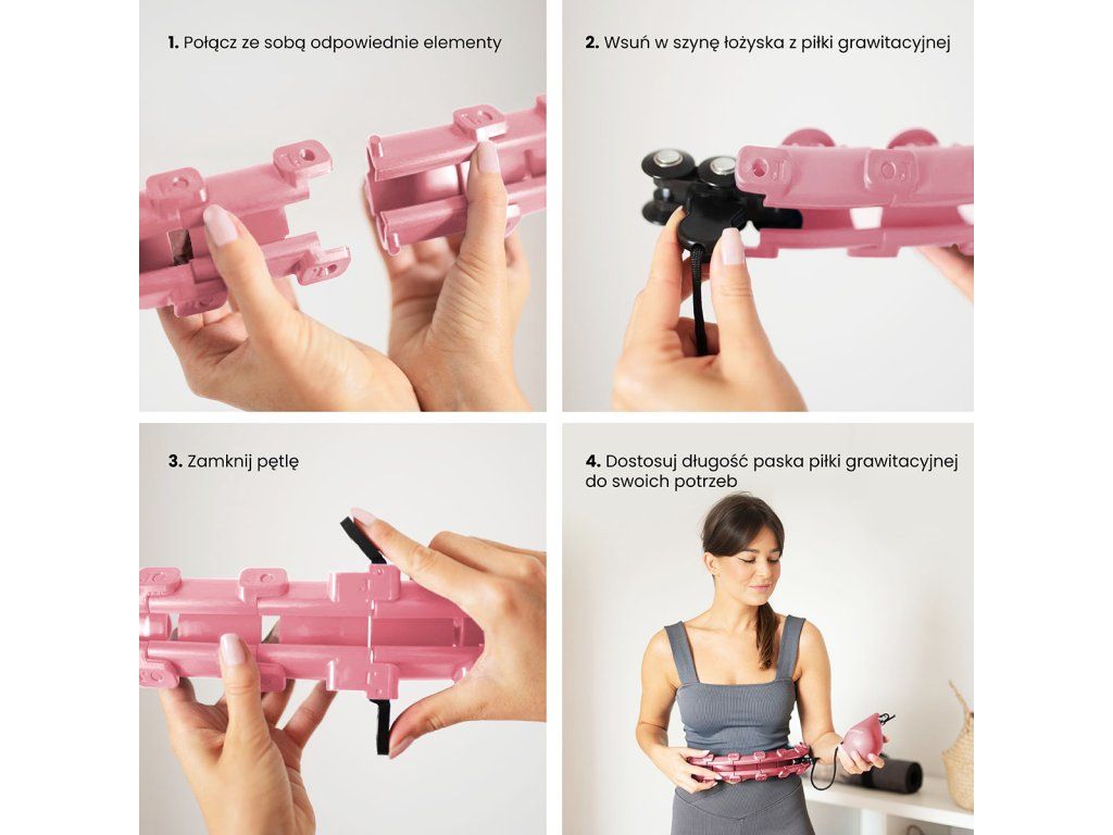 Délka obruče se nastaví podle obvodu pasu tak, aby byla dostatečně volná, ale zároveň aby nepadala přes boky. Po nastavení délky se obruč uzamkne pomocí spojovacího dílu, který je osazen páčkami pro ovládání zámku. Závaží se následně "vrhne" směrem, do kterého budeme kroutit boky a začneme trénink. Obruč HHW01 je z vnitřní strany opatřena masážními kloboučky s pružinami, které tlumí vibrace od pohybující se kotvy a zároveň příjemně masírují oblast pasu. Intensitu tréninku ovlivňuje délka provázku a rychlost, jakou kroutíme boky.