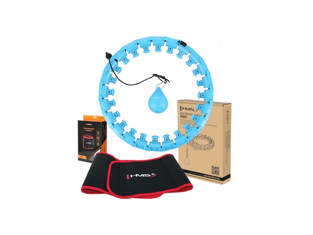 Sada masážní hula hoop HMS HHW01 se závažím a zeštíhlujícího pásu BR163 modrá