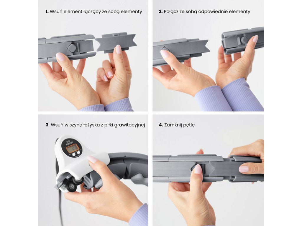Délka obruče se nastaví podle obvodu pasu tak, aby byla dostatečně volná, ale zároveň aby nepadala přes boky. Po nastavení délky se obruč uzamkne pomocí spojovacího dílu, který je osazen páčkou pro ovládání zámku. Závaží se následně "vrhne" směrem, do kterého budeme kroutit boky a začneme trénink. Obruč HHW06 je z vnitřní strany opatřena masážními výstupky s pružinami, které tlumí vibrace od pohybující se kotvy a zároveň příjemně masírují oblast pasu. Intensitu tréninku ovlivňuje délka provázku a rychlost, jakou kroutíme boky.
