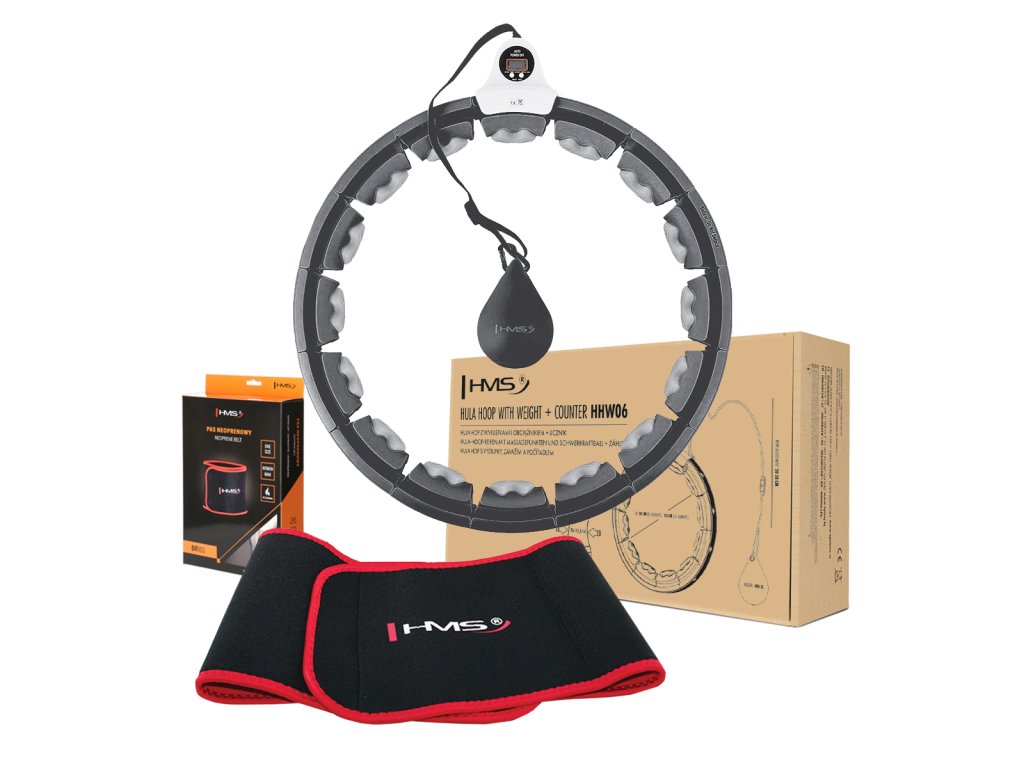 Sada masážní hula hoop HMS HHW06 se závažím a počítadlem a zeštíhlujícího pásu BR163 černá