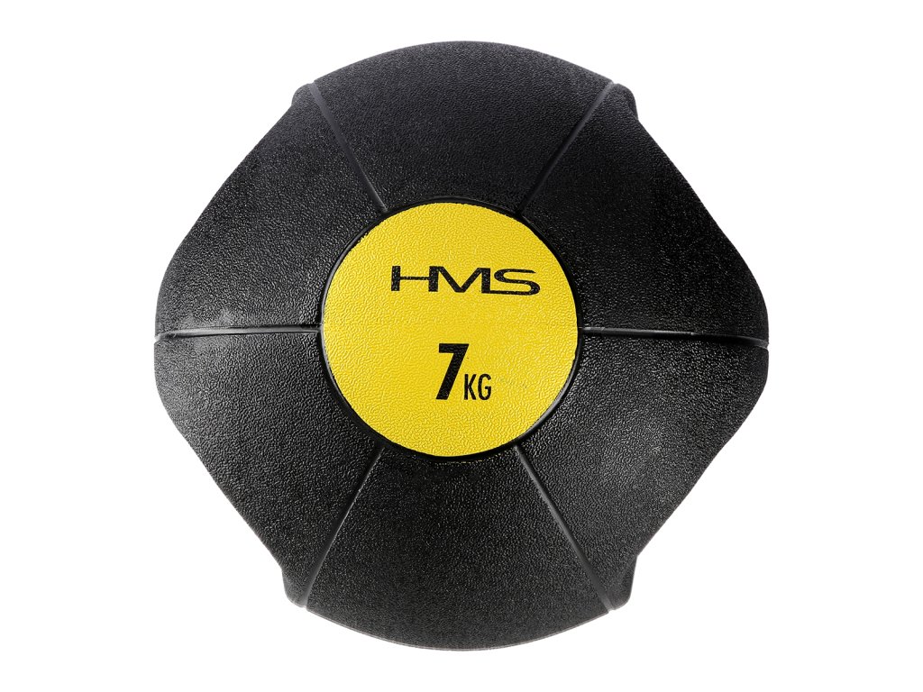 Medicineball HMS NKU07 je vyroben z hrubé a pevné gumy vyplněné pískem. Díky úchytům jde o kombinaci medicinbalu a činky.
