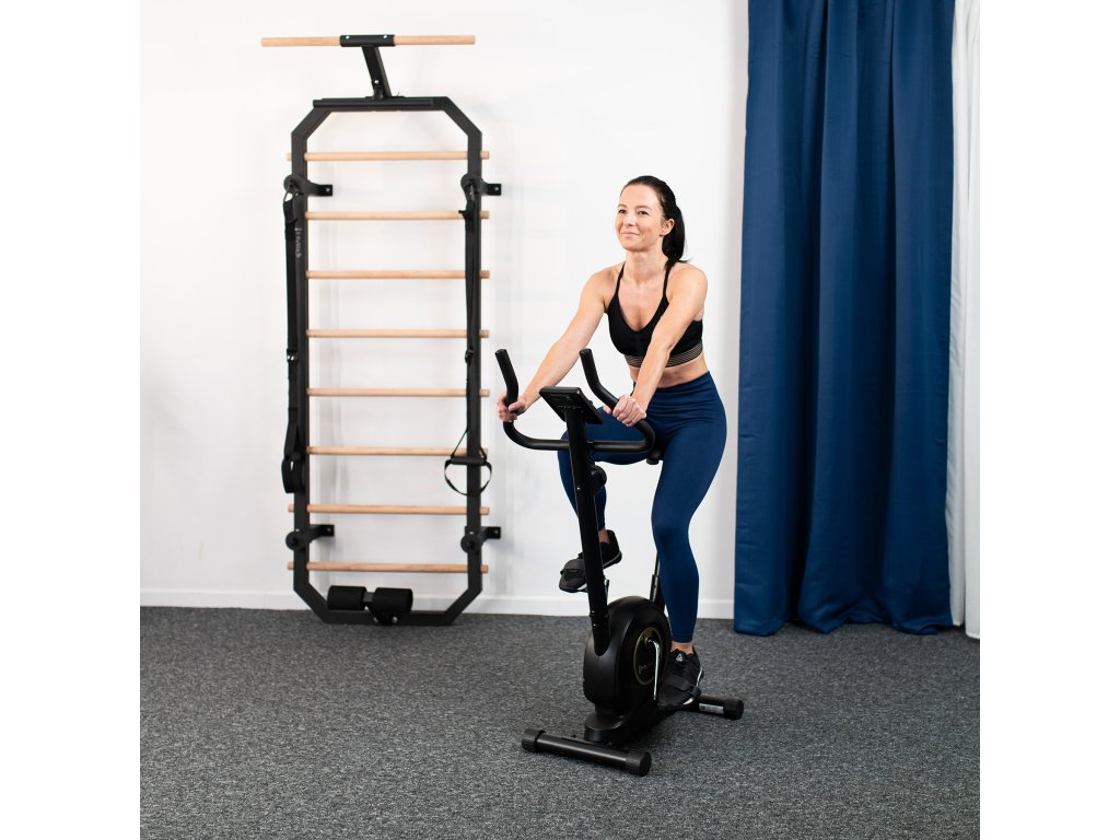 Tepová frekvence je měřena pomocí elektrod umístěných v madlech. Sedlo je výškově nastavitelné do 5-ti úrovní a jeho vzdálenost od pedálu se pohybuje v rozmezí od 58 do 70 centimetrů. Pro maximální stabilitu je zadní "noha" trenažéru osazena otočnými patkami pro vyrovnání stroje do roviny. Přemisťování trenažéru usnadňují transportní kolečka na předním stabilizátoru.