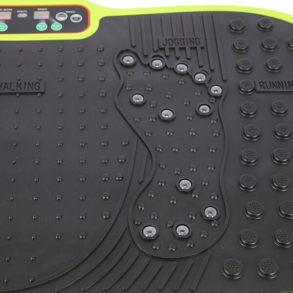Plošina má také 3 úrovně intenzity - při stání uprostřed stroj simuluje chůzi, s mírnou mezerou mezi nohami stroj simuluje běhání a při širokém rozkročení simulujete sprint. A díky dálkovému ovládači, který je součástí balení, je nastavení cvičení rychlé a jednoduché.
