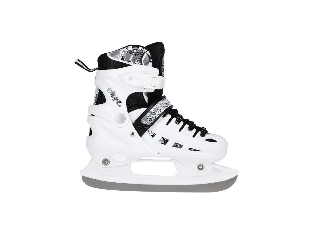 Model je vybaven praktickým systémem čtyřstupňové regulace velikosti – jednoduchým stisknutím tlačítka pod patou lze posunout špičku boty a nastavit jednu ze čtyř velikostí. Tento systém umožňuje, aby brusle rostly spolu s dítětem a současně snižuje celkové náklady na vybavení.