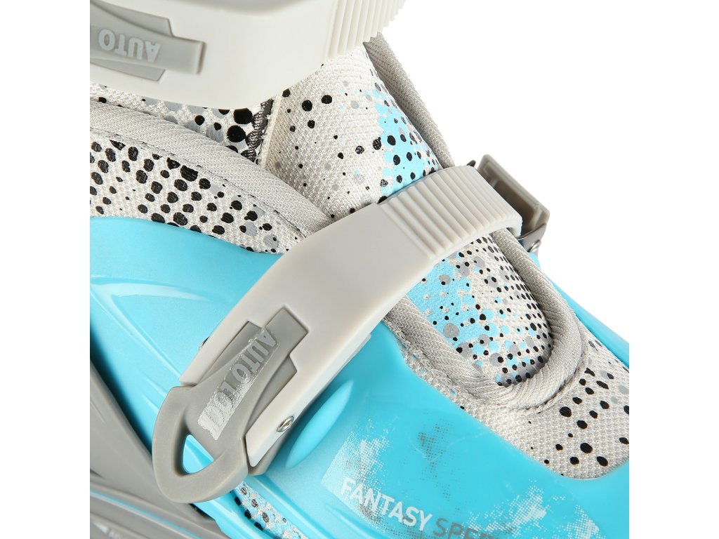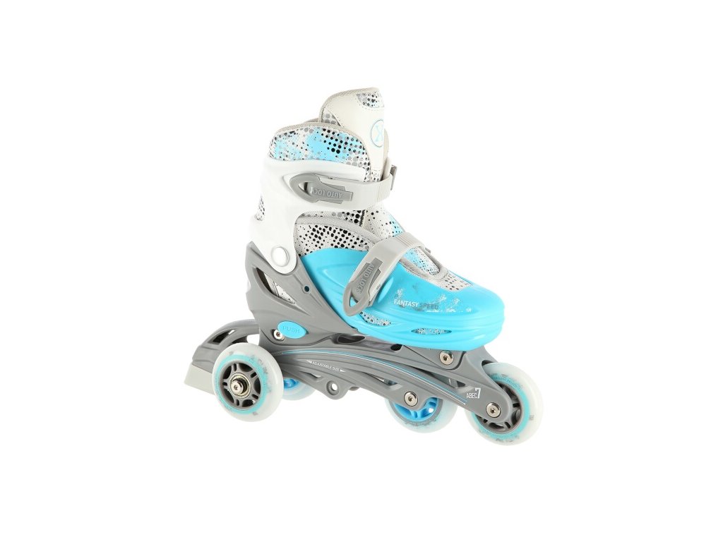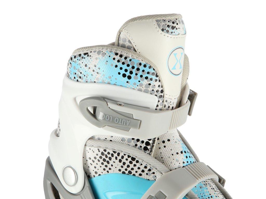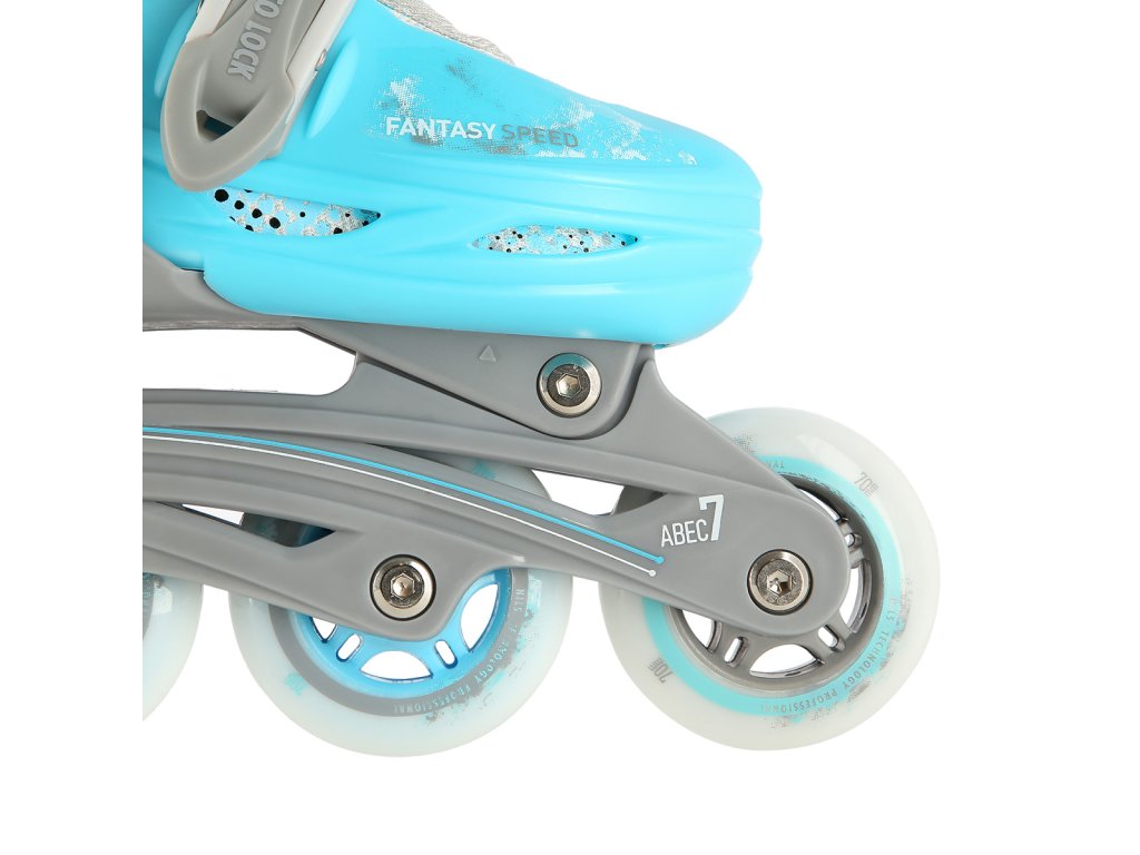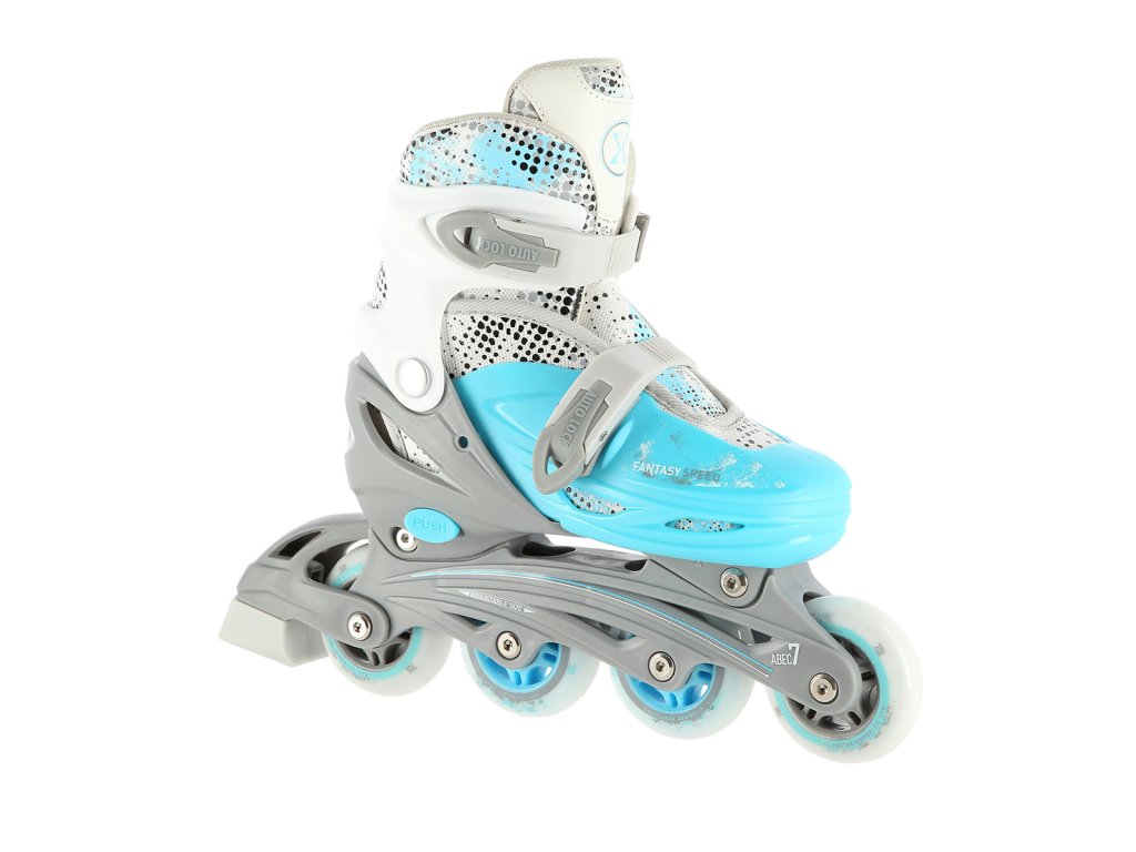 Plastový podvozek je osazen měkkými PU kolečky s ložisky ABEC7 pro svižnou jízdu. Vnější bota je pomocí stisku tlačítka nastavitelná do čtyř velikostí, toto řešení umožňuje precizní přizpůsobení velikosti podle aktuálních potřeb anebo se používá jako "rostoucí bota", která "roste" spolu s nohou dítěte.