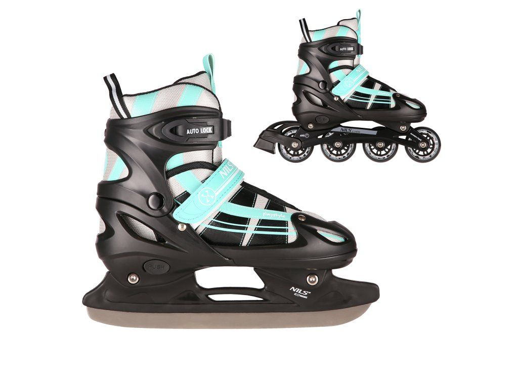 Kolečkové brusle NILS Extreme NH18366A jsou určeny k rekreačním projížďkám pro začínající a středně pokročilé bruslaře. Model NH18366A v sobě spojuje poutavý design a kvalitní materiály. Model má vyměnitelný podvozek a brusle tak využijete jak na asfaltu, tak na ledu.