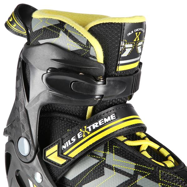 Kolečkové brusle NILS Extreme NA11002 jsou určeny k rekreační jízdě začínajících a mírně pokročilých bruslařů po rovných a hladkých stezkách, jako například po asfaltu. Lehká a odolná bota zajišťuje bezpečnost při jízdě. Systém ventilace a tvarovaná stélka boty přímo ovlivňují zvýšení uživatelského komfortu. Jedná se o model s nastavitelnou velikostí, kdy každá brusle má na výběr ze 4 rozměrů. Pomocí jednoduchého řídicího systému lze snadno a rychle nastavit velikost boty na noze uživatele. Kolečka s tvrdostí 82A jsou uložena v hliníkové liště, dobře přiléhají k podkladu a částečně pohlcují nervnosti. Model NA11002 je osazen ložisky ABEC 7, která se vyznačují precizním zpracováním a nízkým odporem, kdy jízda má dobrou setrvačnost a na bruslích tak lze urazit dlouhou vzdálenost bez vynaložení zbytečné síly.