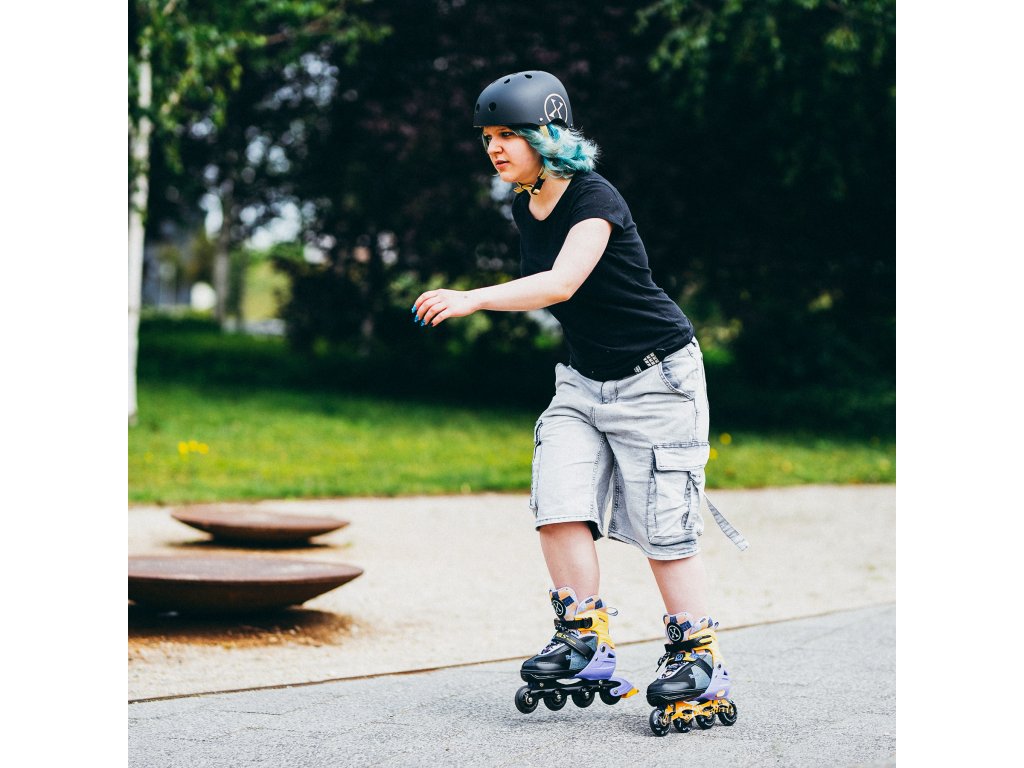 Vnější bota je vyrobena z odolného polyetylenu, který se vyznačuje odolností proti mechanickému poškození a pružností. Díky tomu si brusle udrží svůj tvar i po dlouhém používání. Hliníkový rám je lehký a zároveň velmi pevný, umožňuje efektivní přenos síly z chodidla na kolečka, což zlepšuje dynamiku jízdy. Navíc použitý materiál pomáhá udržet nízkou váhu celé brusle, což usnadňuje manévrování a umožňuje delší radost z jízdy bez pocitu únavy.