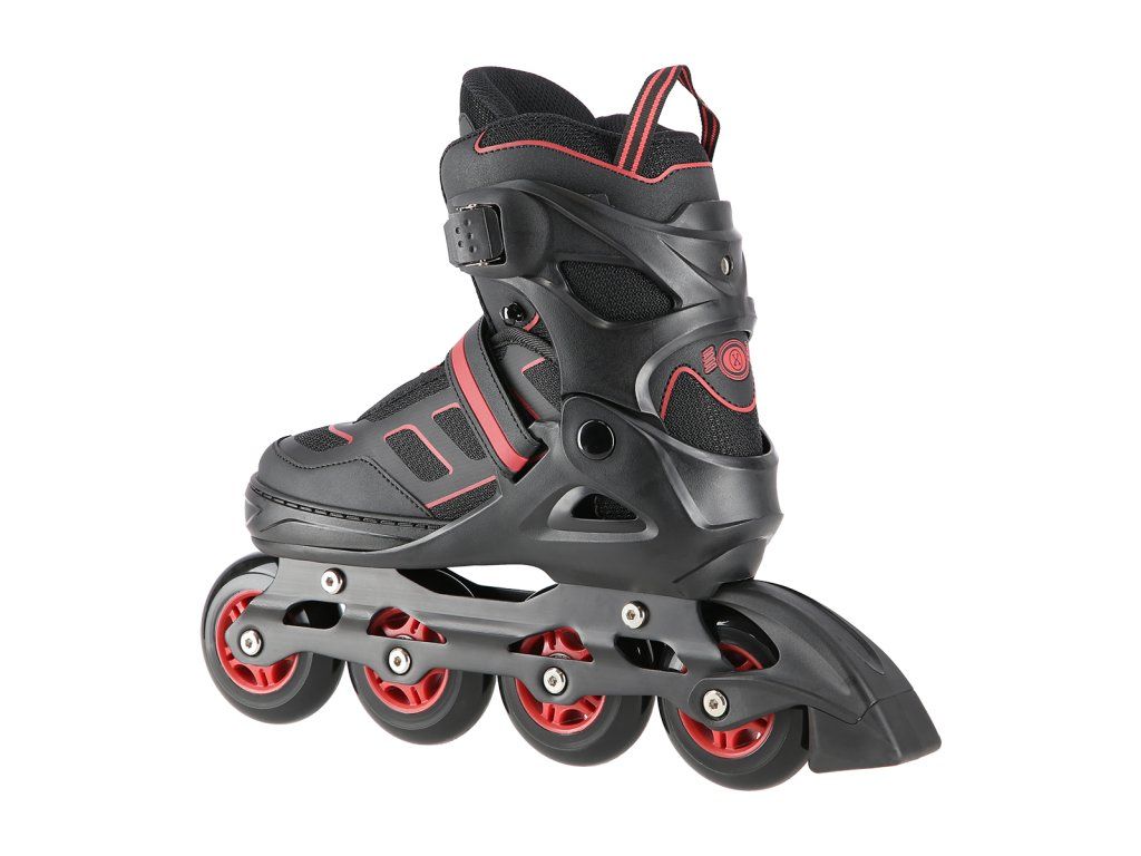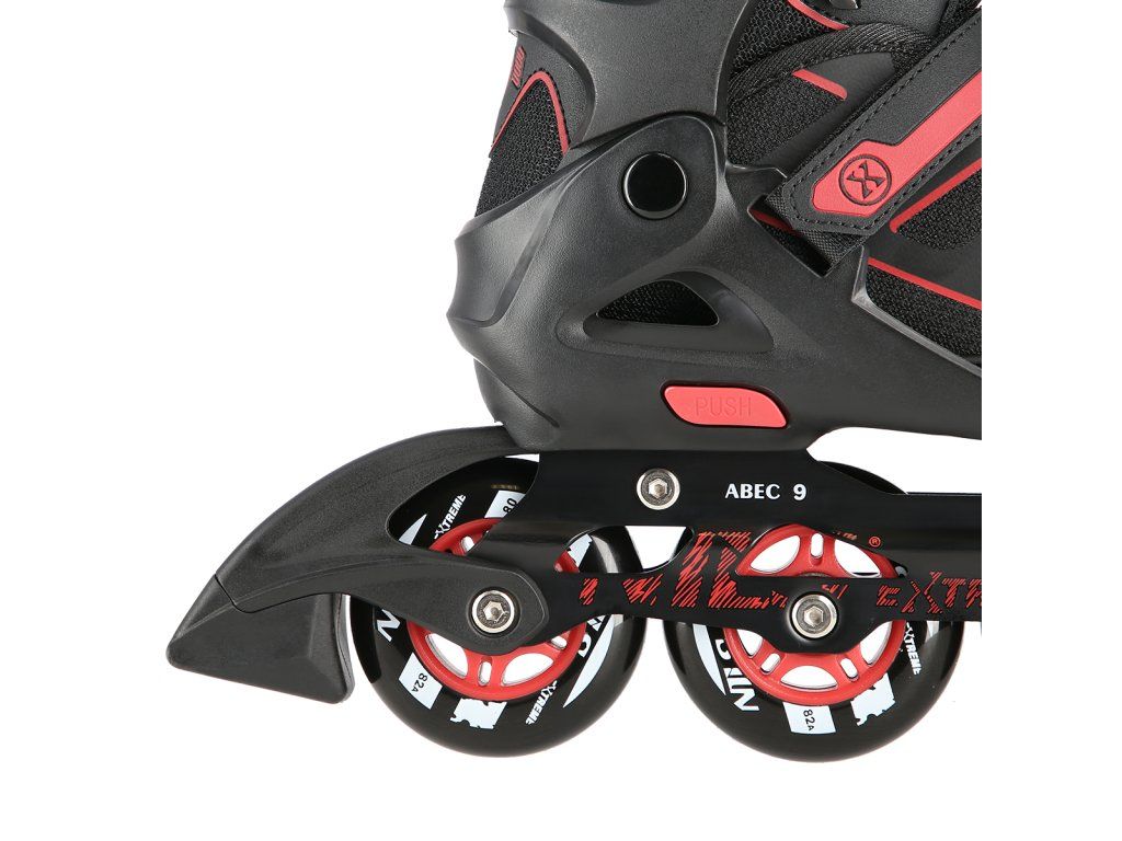 Kolečkové brusle NILS Extreme NA14174 jsou vhodné k rekreační jízdě po tvrdém a rovném povrchu. Podvozek brusle je vyroben z hliníku a je osazen PU kolečky o tvrdosti 82A s ložisky ABEC 9. Poloměkká bota je vyrobena z polypropylenu, který je velice odolný. Vložka je profilovaná a prodyšná. Brusle je možné pomocí stisku tlačítka a posunutí přední částí boty nastavit do jedné ze čtyř velikostí. Zapínání je řešeno klasickou trojkombinací (dvousekční přezka, pásek se suchým zipem a šněrování). Model NA14174 je určen pro začínající a středně pokročilé bruslaře.